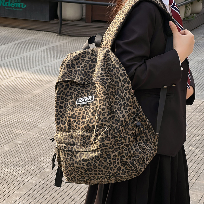 暗黑风炸街豹纹双肩包男女韩版ins大容量百搭休闲学生书包潮男女