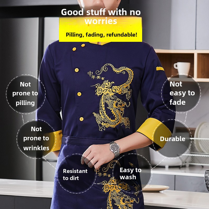 高档加大加肥厨师服短袖透气男餐厅饭店总厨行政厨师长工作服长袖