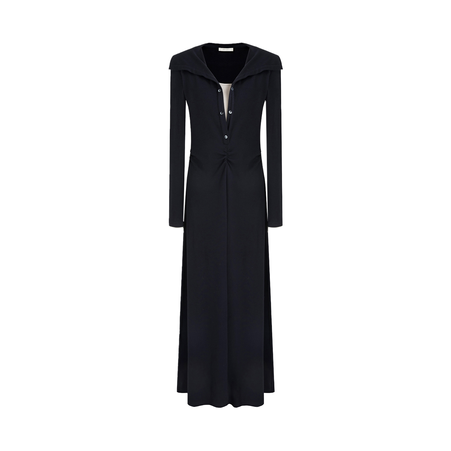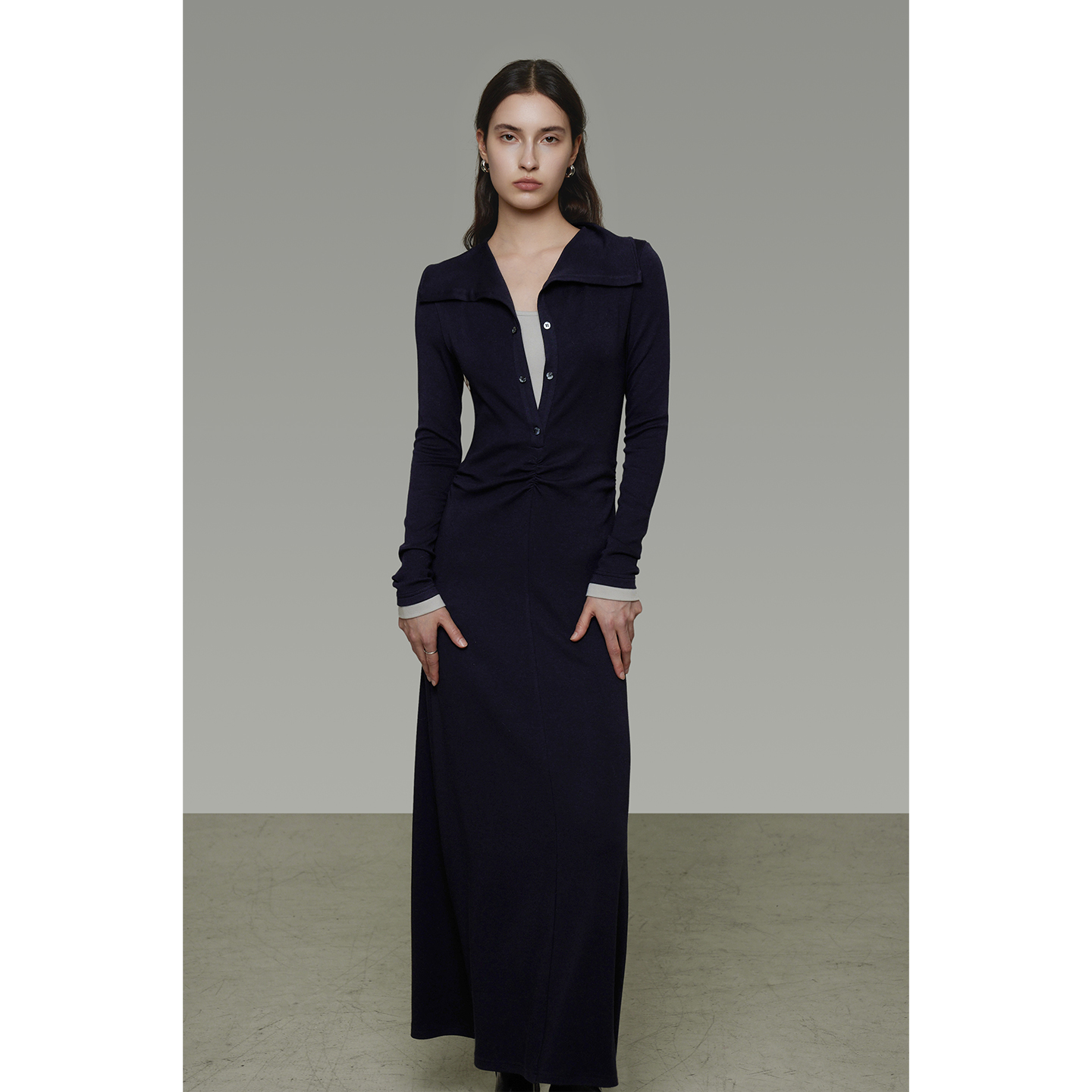 UNSPOKEN撞色假两件针织连衣裙女秋原创设计感修身显瘦半开襟长裙
