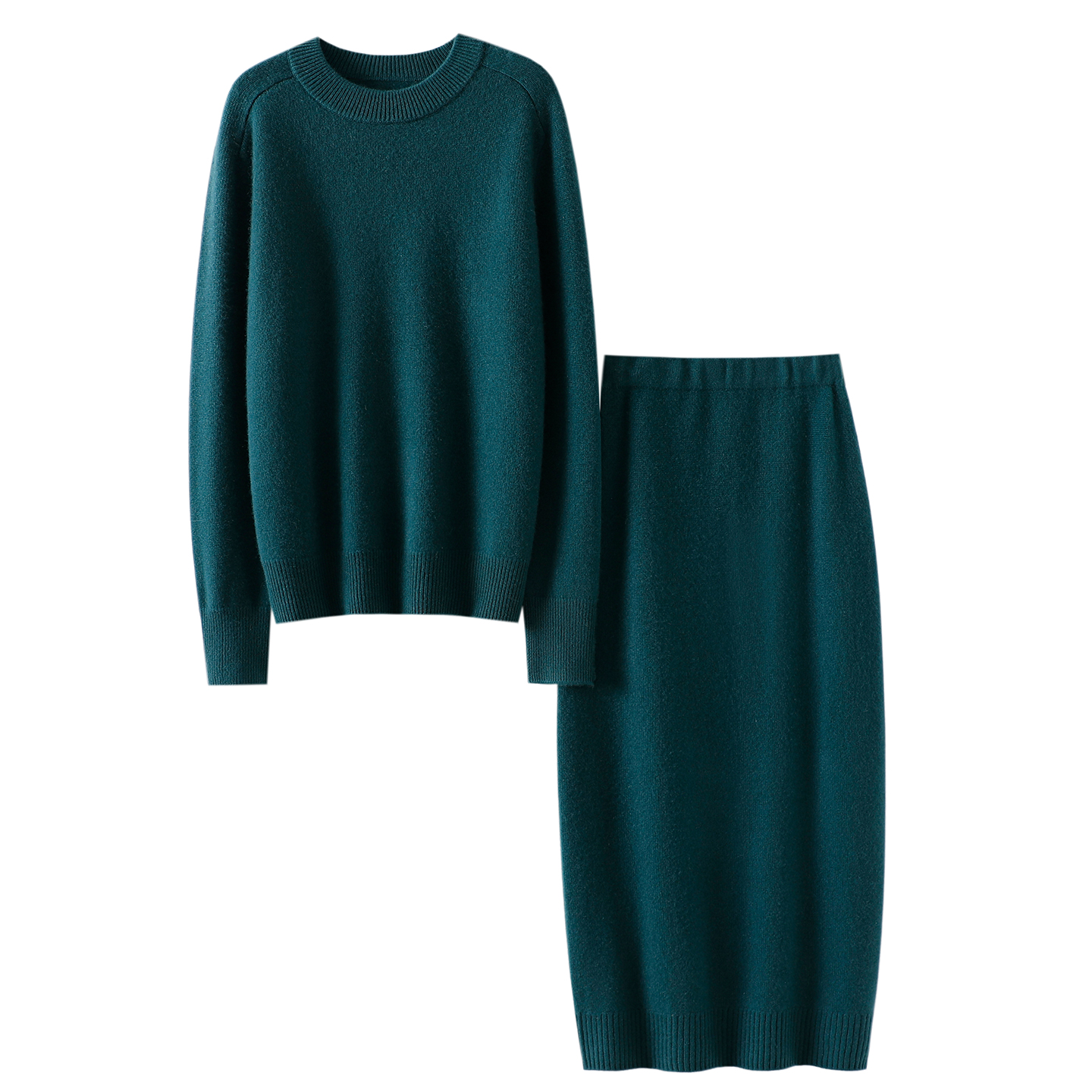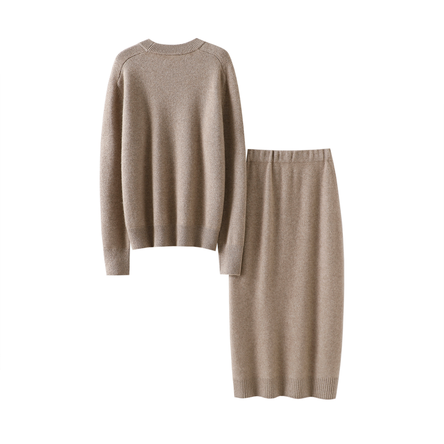 气质简单又美好!加厚100%纯山羊绒衫女圆领包臀半身裙子秋冬套装