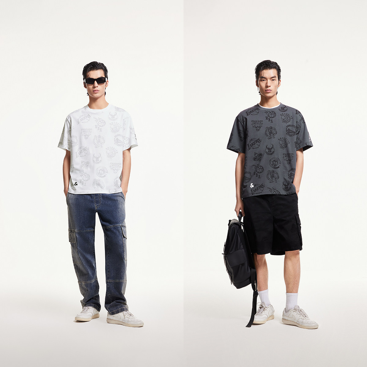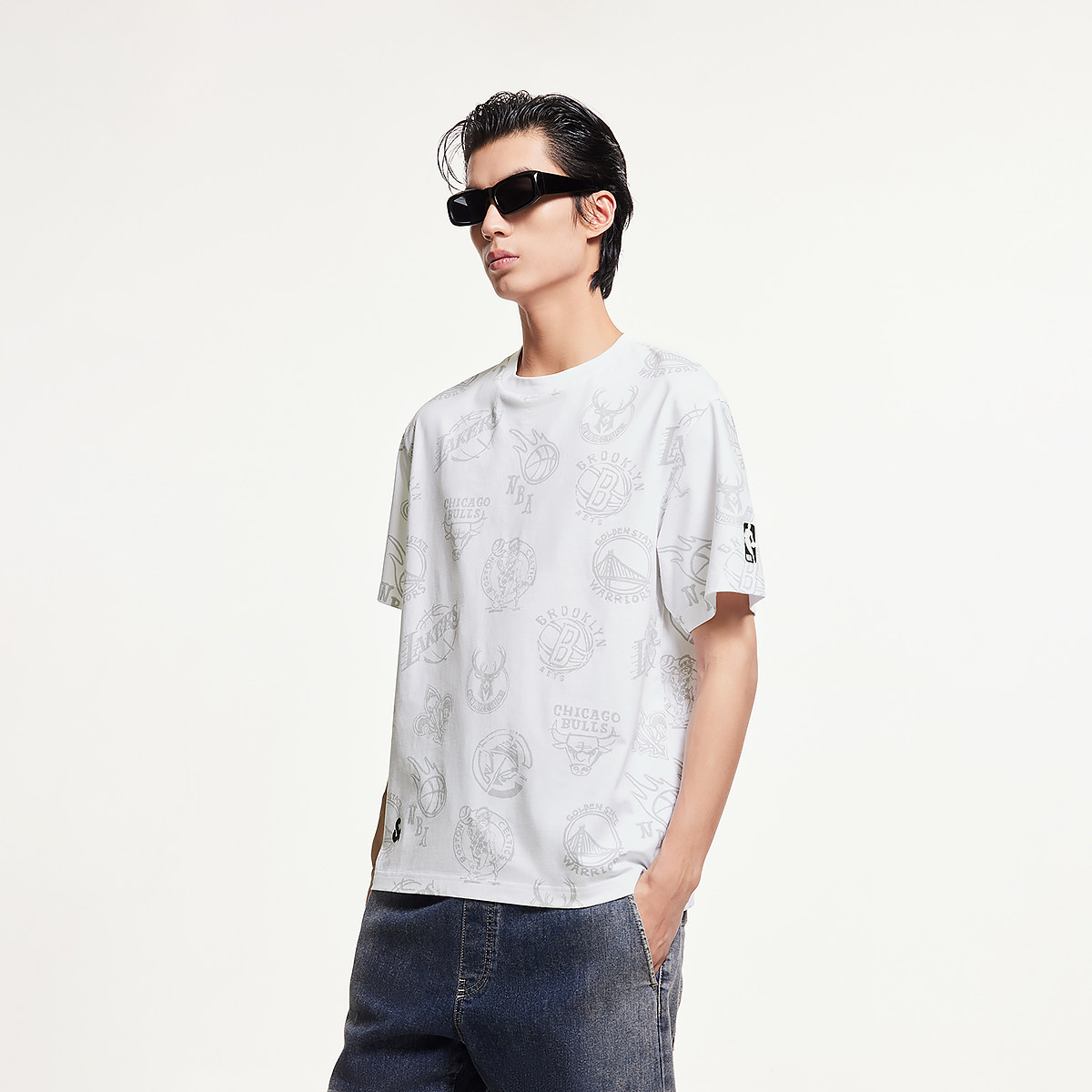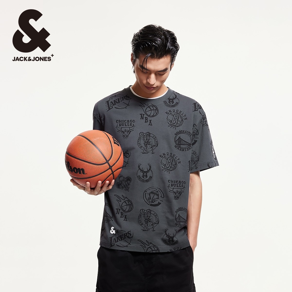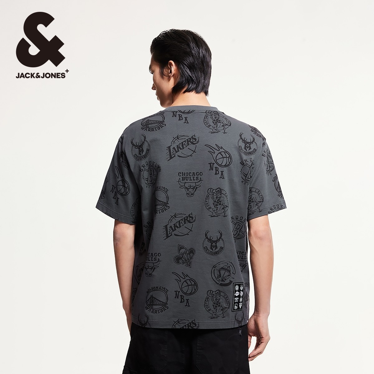 杰克琼斯春季百搭NBA联名略宽松罗纹圆领男士短袖T恤男款上衣男装