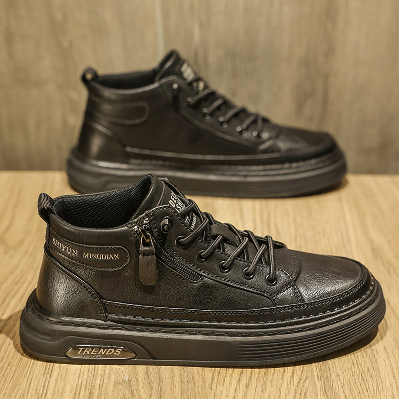 高筒男鞋秋季2023新款男士休闲运动板鞋潮流百搭皮鞋拉炼男款冬季
