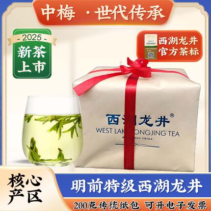 中梅2025年新茶上市明前特级西湖杭州春茶龙井200g绿茶梅家坞产区