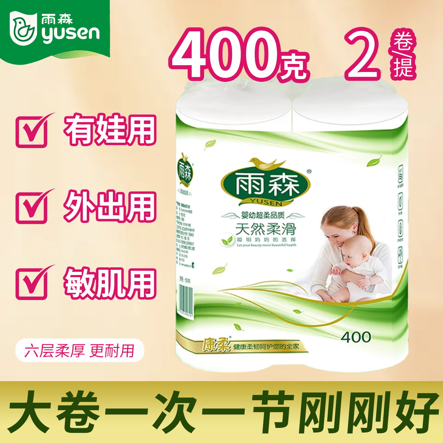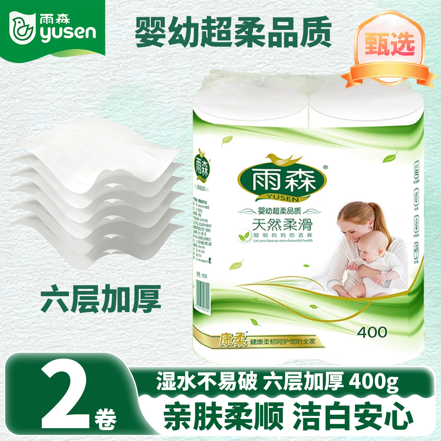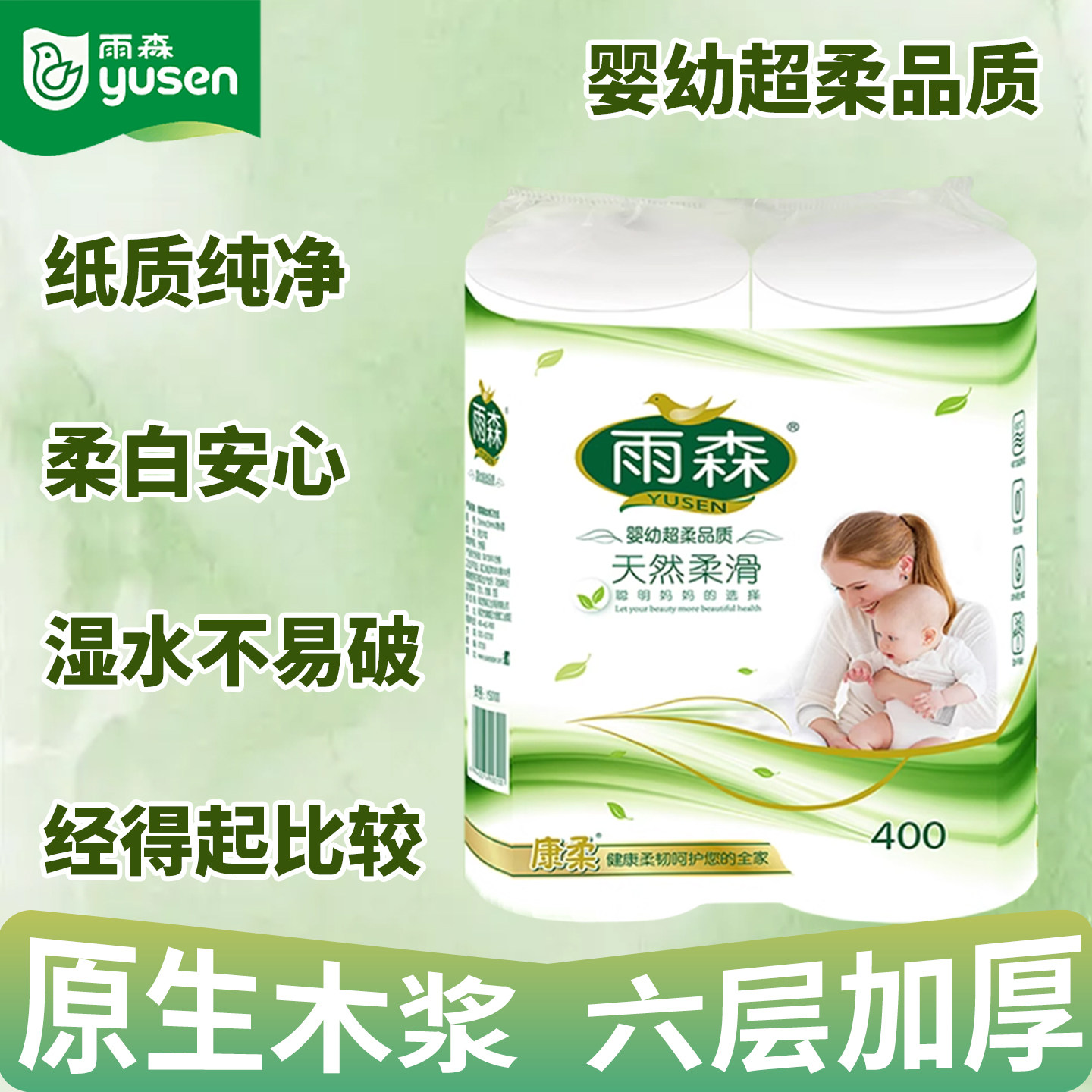 雨森妇婴卫生纸400g中长卷纸巾加厚无芯卷筒纸原生木浆家用卷纸