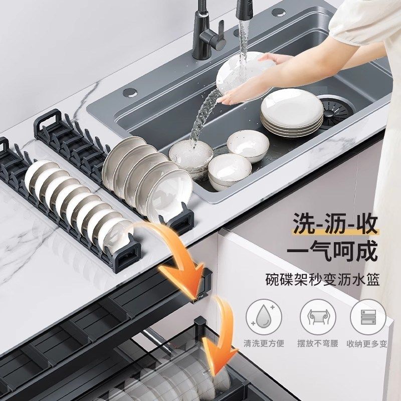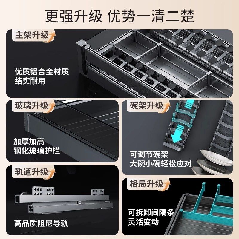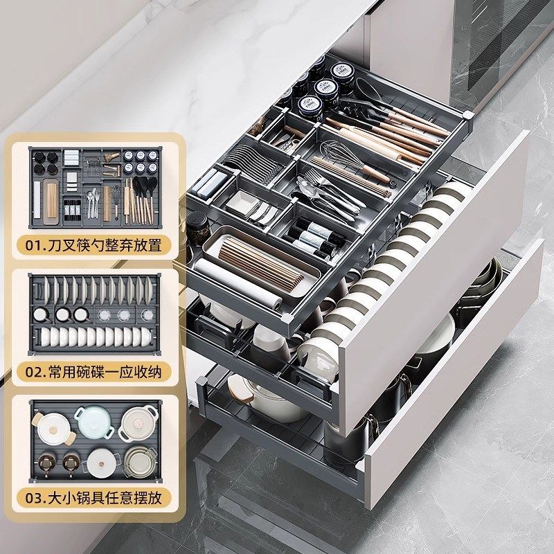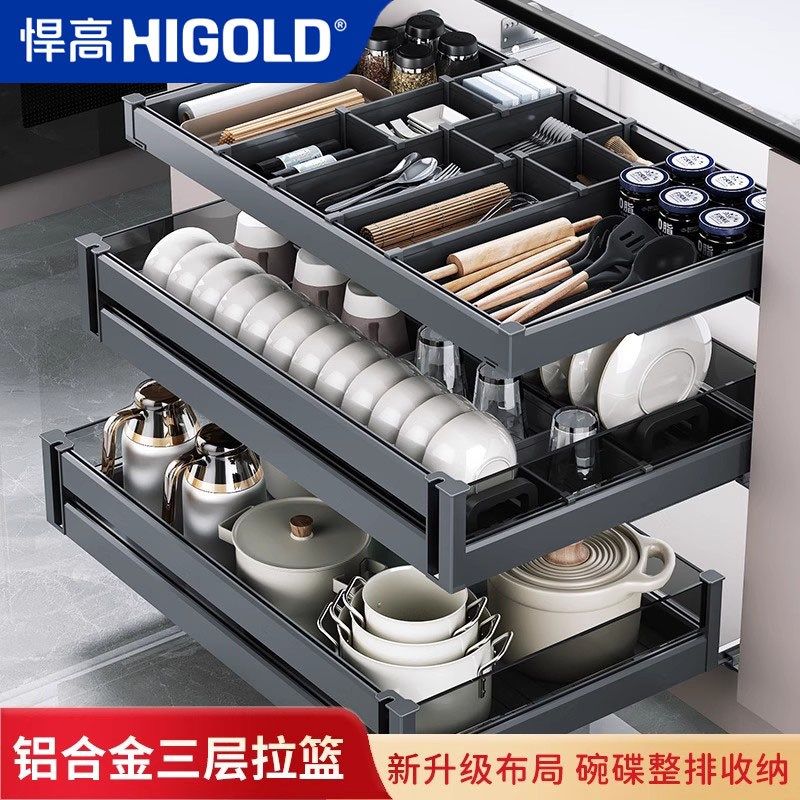 悍高拉篮厨房整体橱柜抽屉适用铝合金碗碟拉篮内置锅具调味料收纳