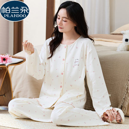 莫代尔棉长袖开衫睡衣女士春秋季