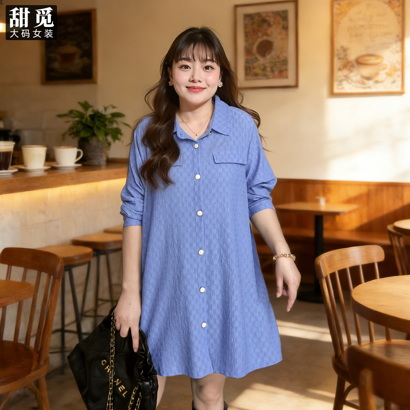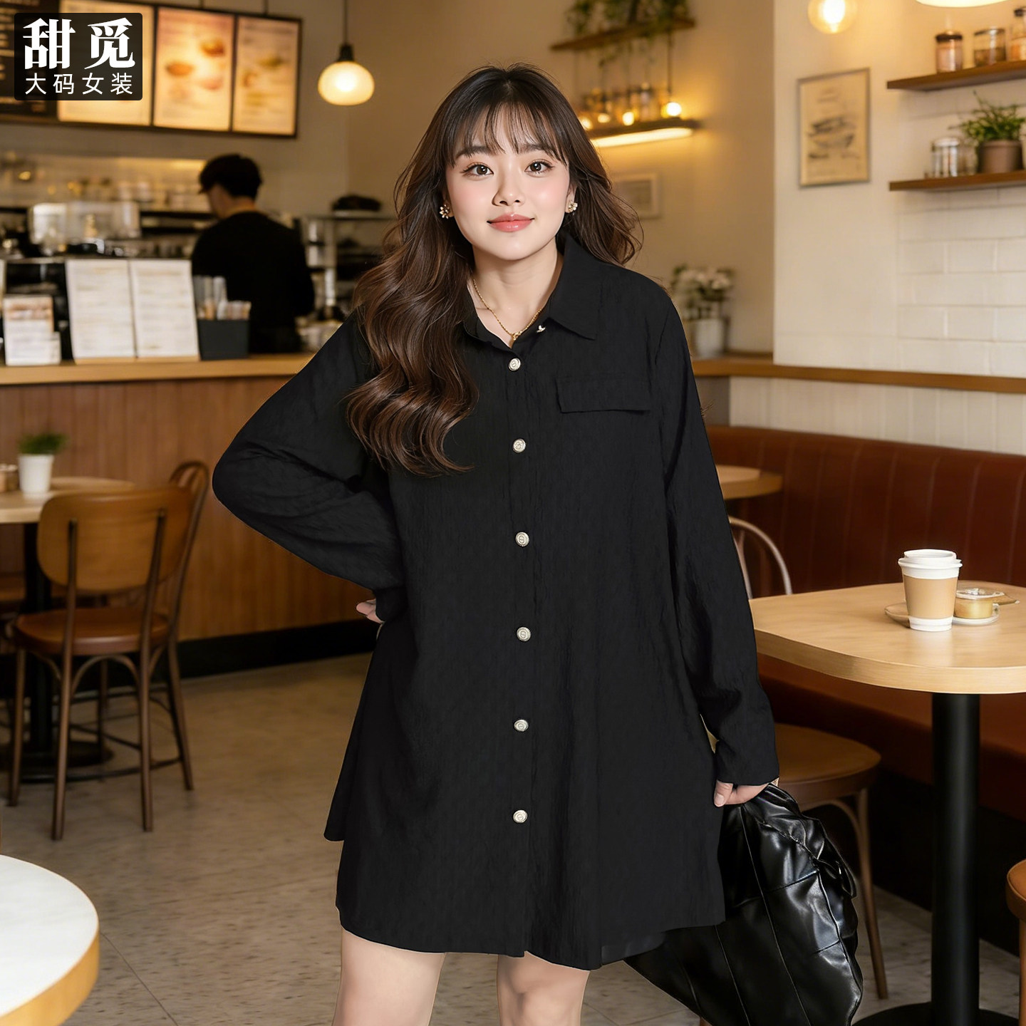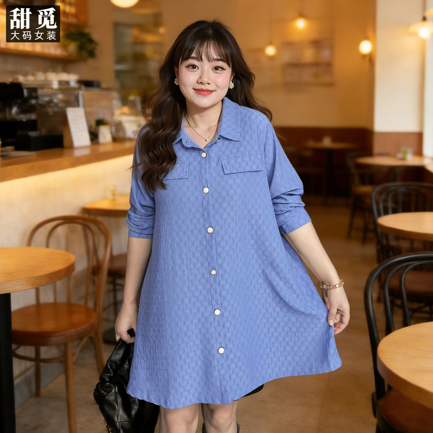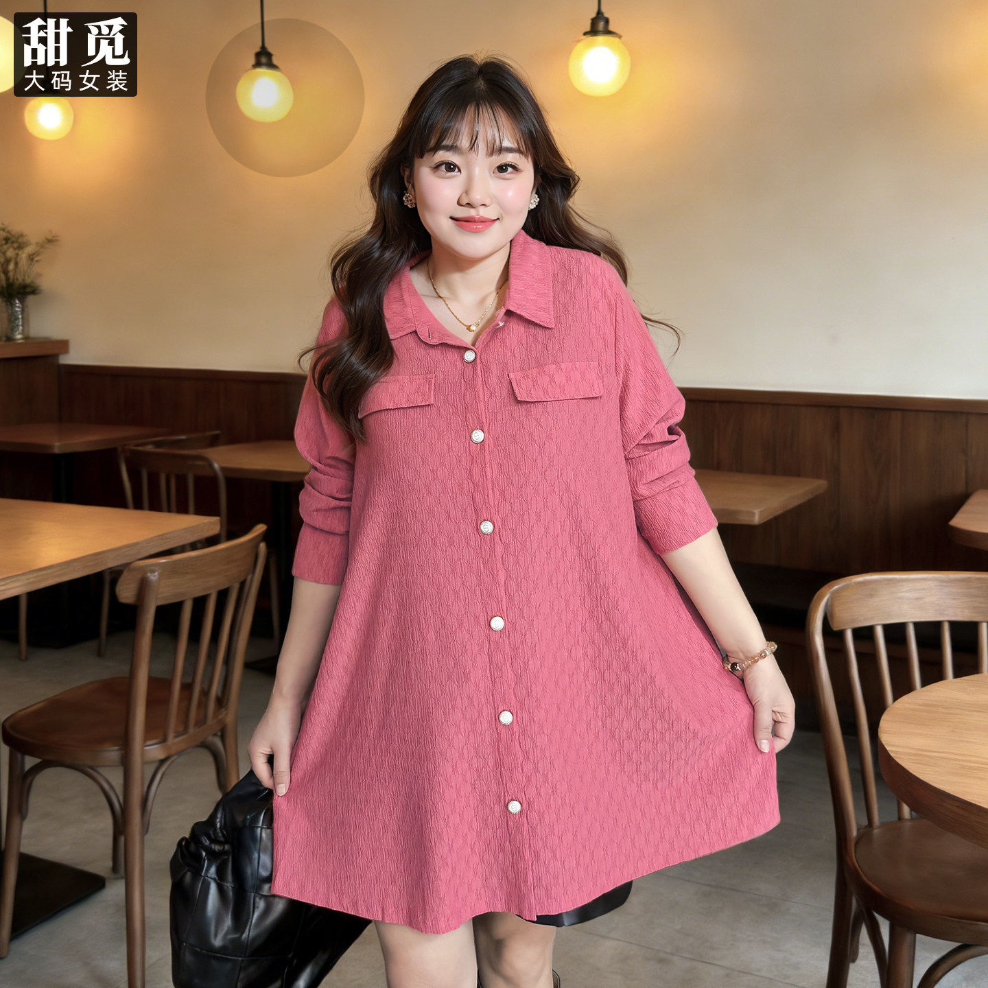 甜觅特大码女装2026早春新款胖mm300斤时尚洋气宽松显瘦长款衬衫