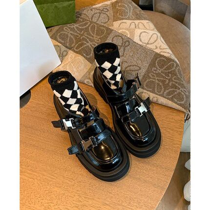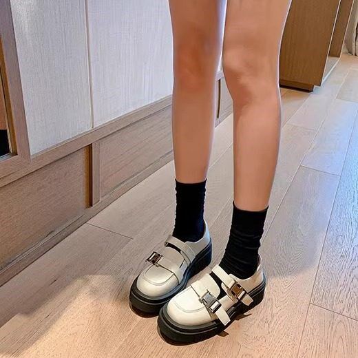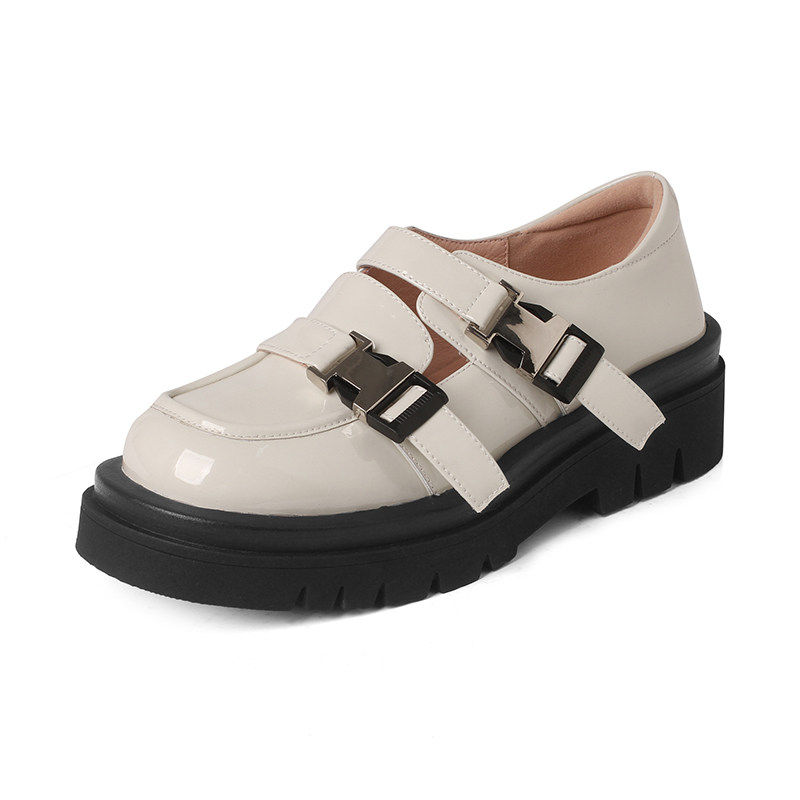 甜酷gl2026春季新款欧货镂空扣带圆头粗跟厚底英伦风小皮鞋女单鞋