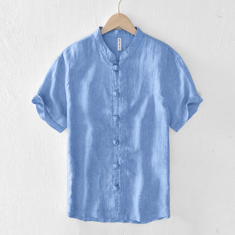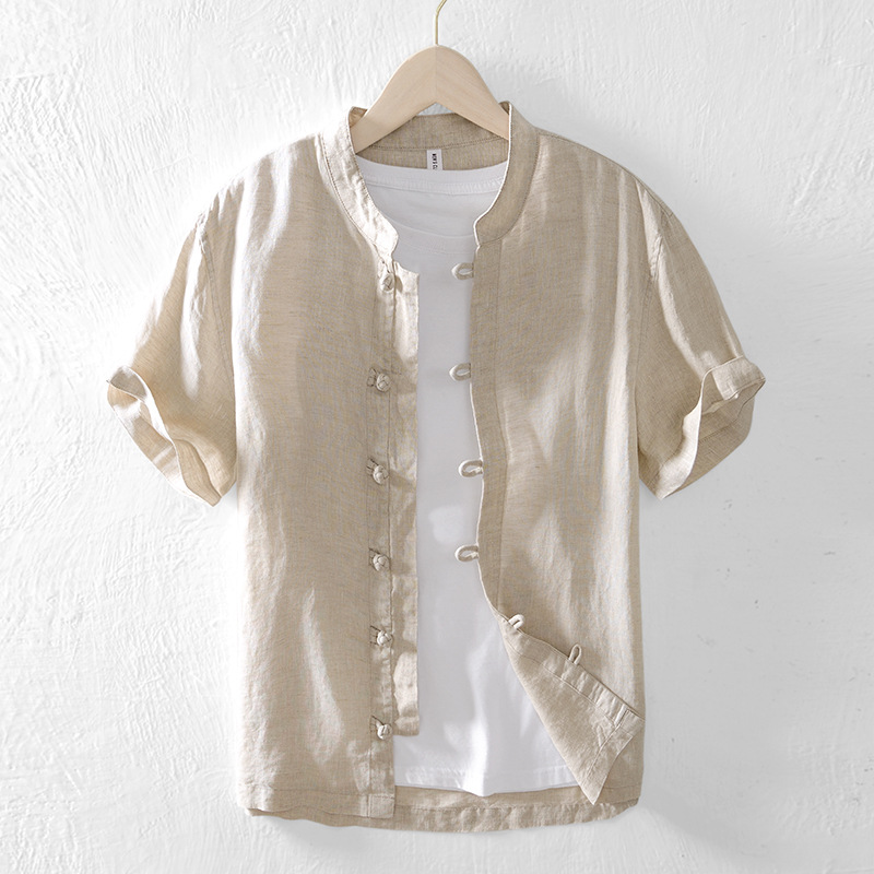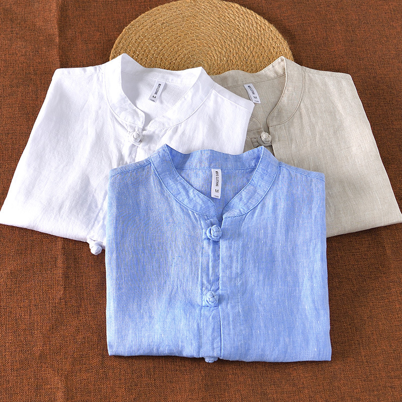 中国风复古盘扣亚麻衬衫男夏季薄款潮日系纯麻料短袖休闲衬衣茶服
