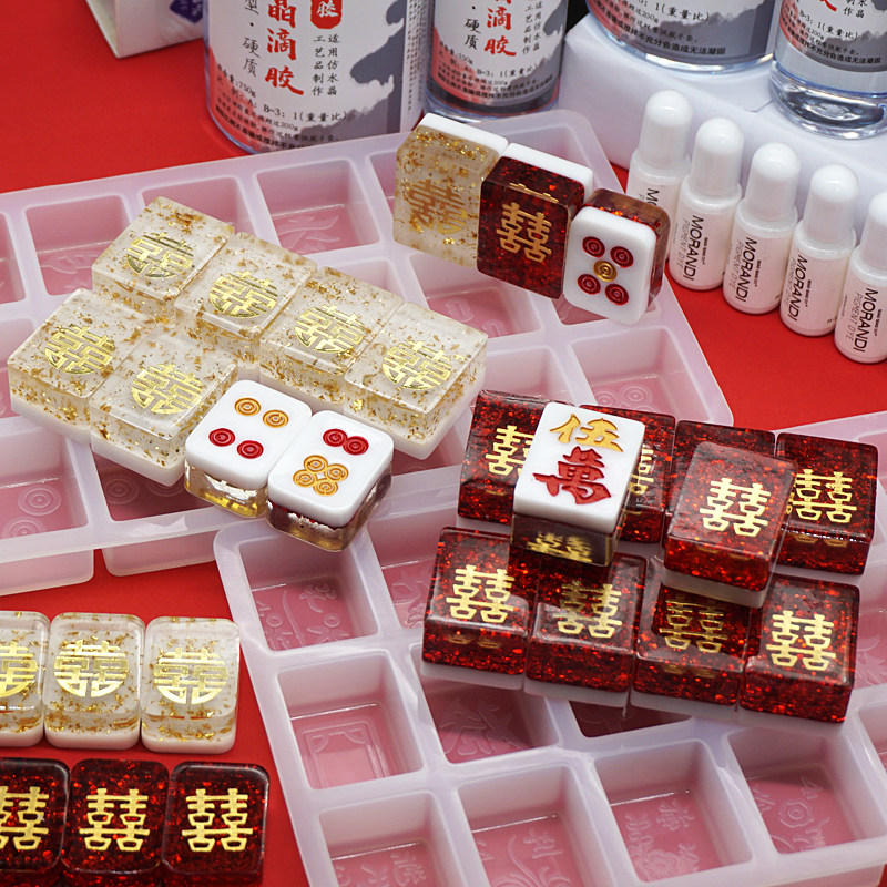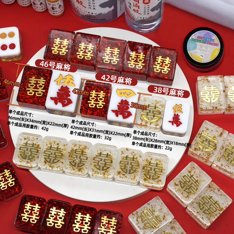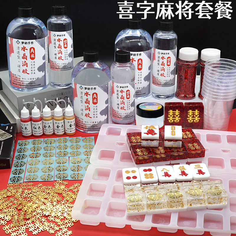 梦初水晶滴胶麻将diy材料包套装喜字新结婚手工配件模具AB胶套餐