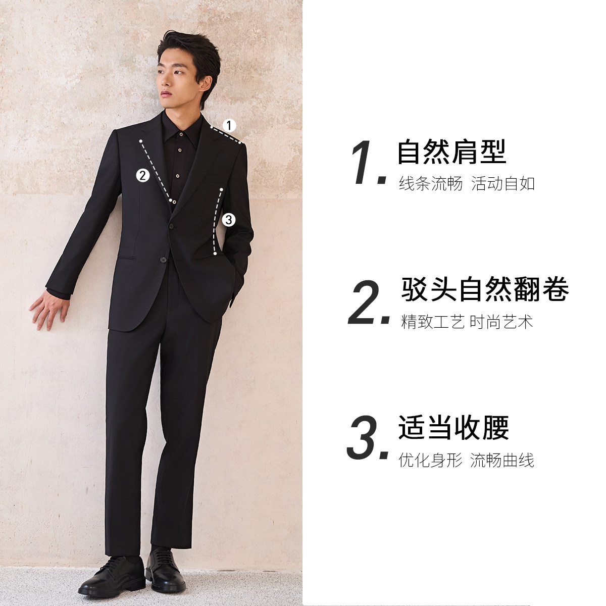 吉约蒙西装男套装新郎结婚礼服商务职业正装黑色高级感西服外套