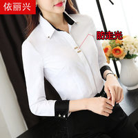 职业衬衫女长袖修身工作服大码正装2024秋冬韩范显瘦黑白打底上衣