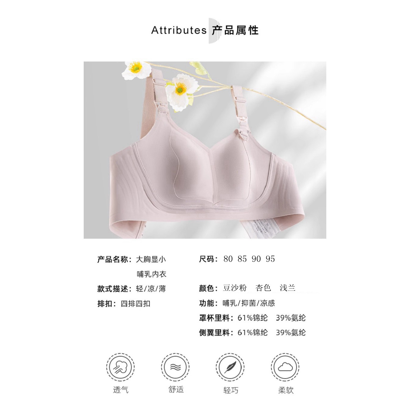 孕之彩反重力哺乳文胸大罩杯薄款