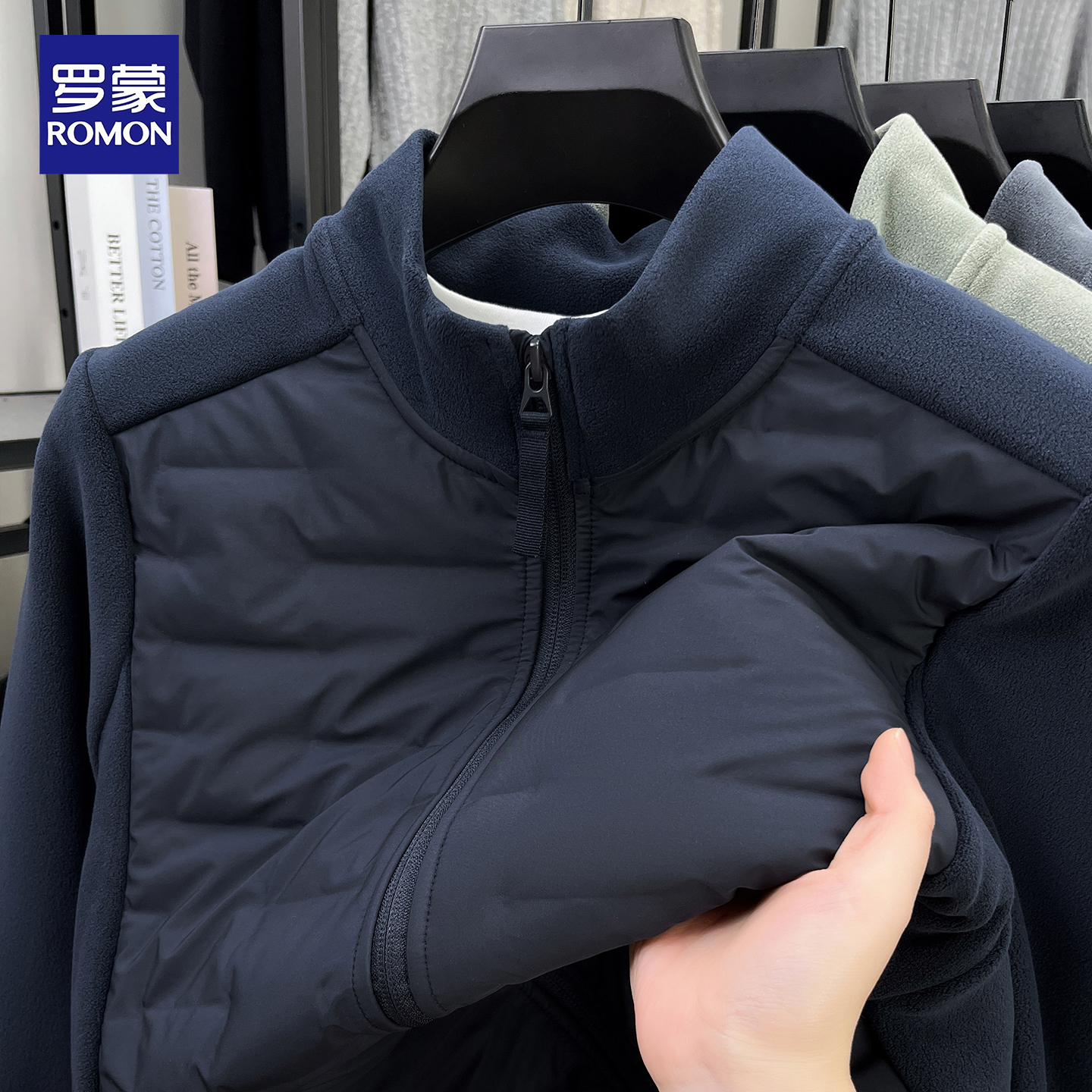 罗蒙秋冬新款男士轻薄羽绒服户外加绒加厚保暖冲锋衣内胆抓绒外套