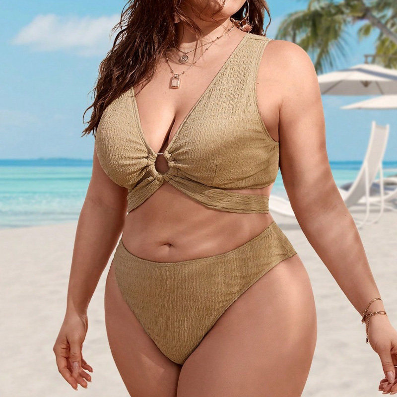 度假海边比基尼大码胖mm200斤性感遮肚显瘦分体泳衣女三件套罩裙