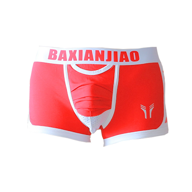 枪弹式分离男士内裤 本命年红色纯棉性感U凸囊袋阴囊托透气平角裤