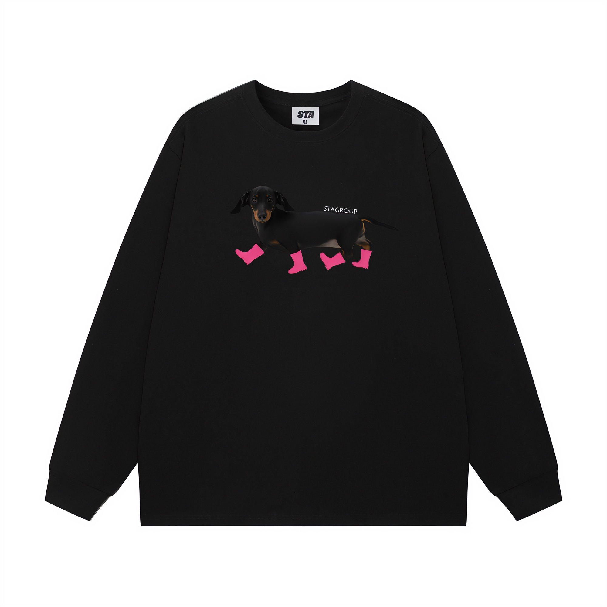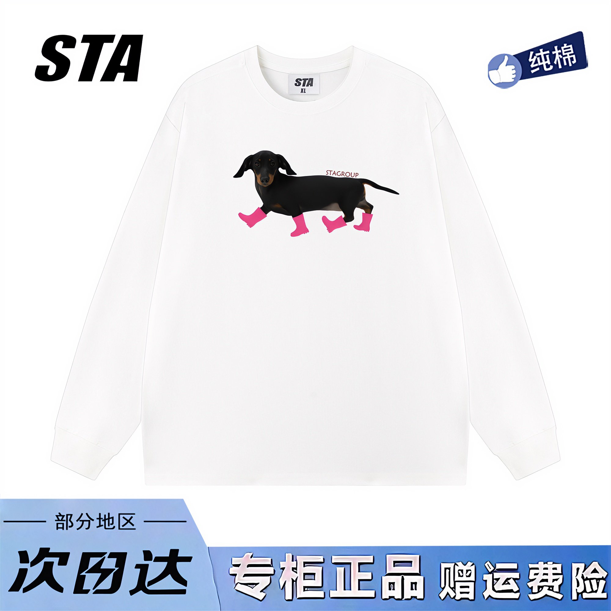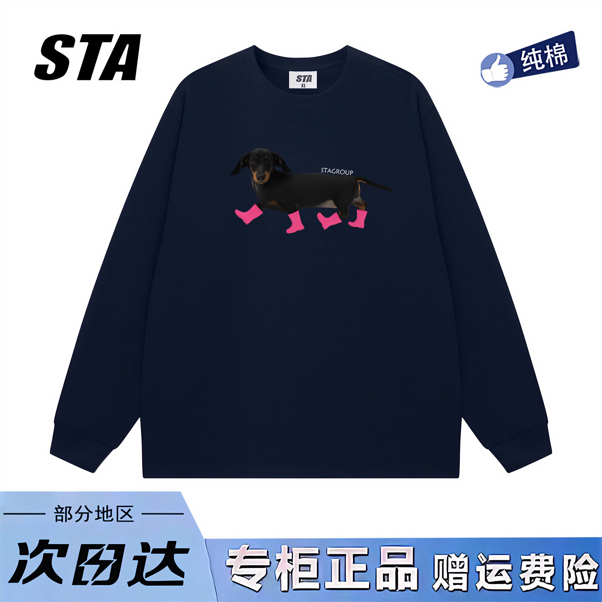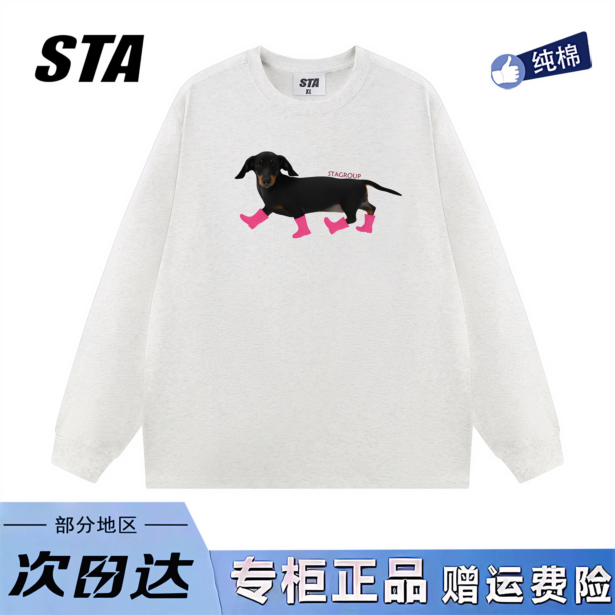 STA旗舰店美式腊肠狗印花长袖男女潮牌复古高街重磅纯棉情侣卫衣