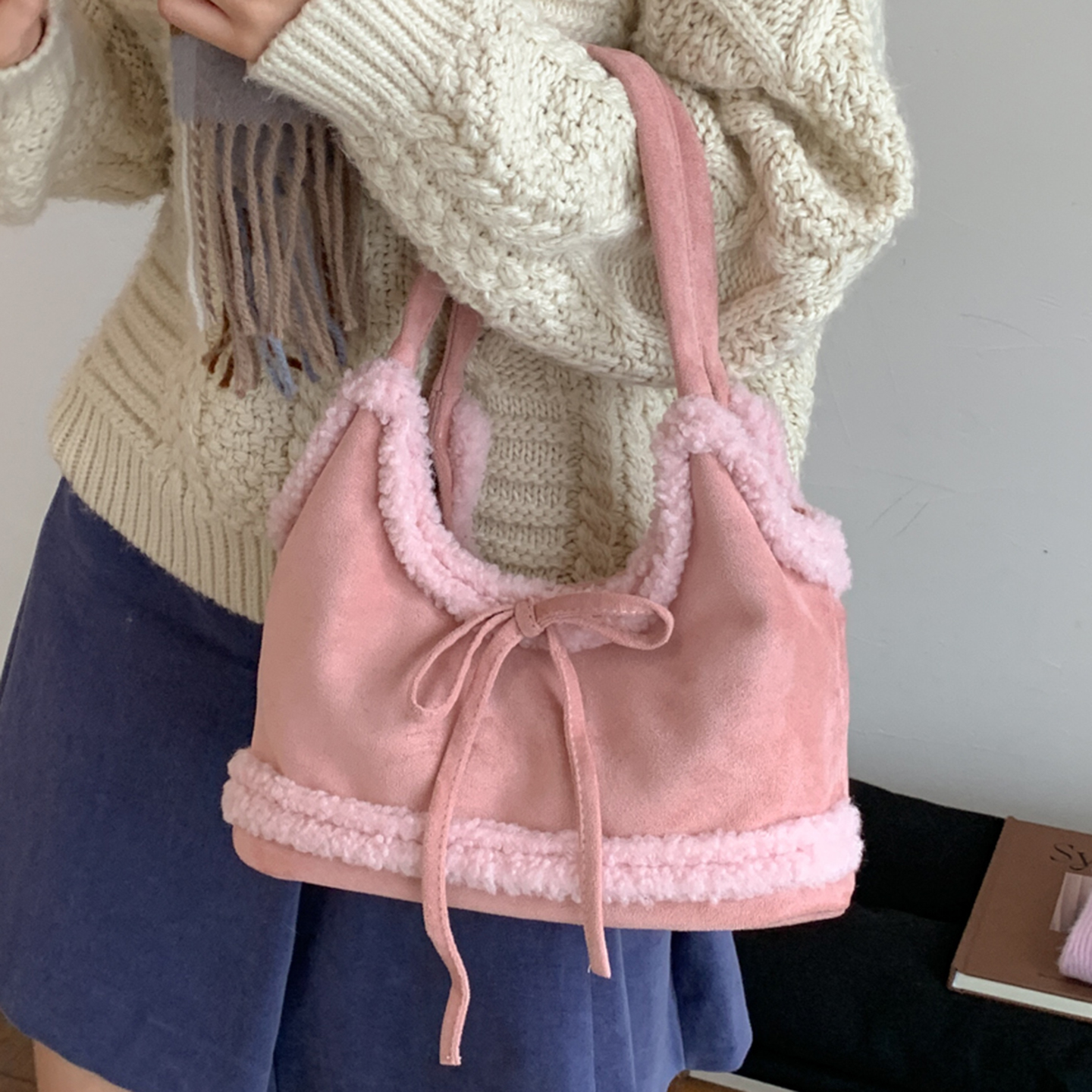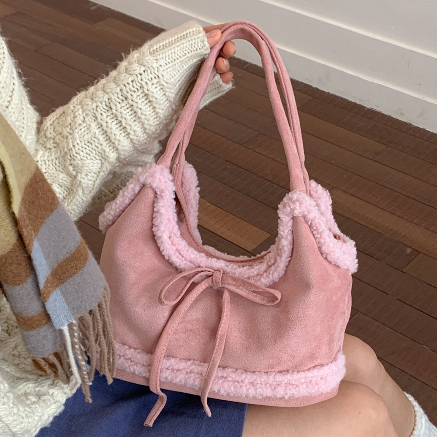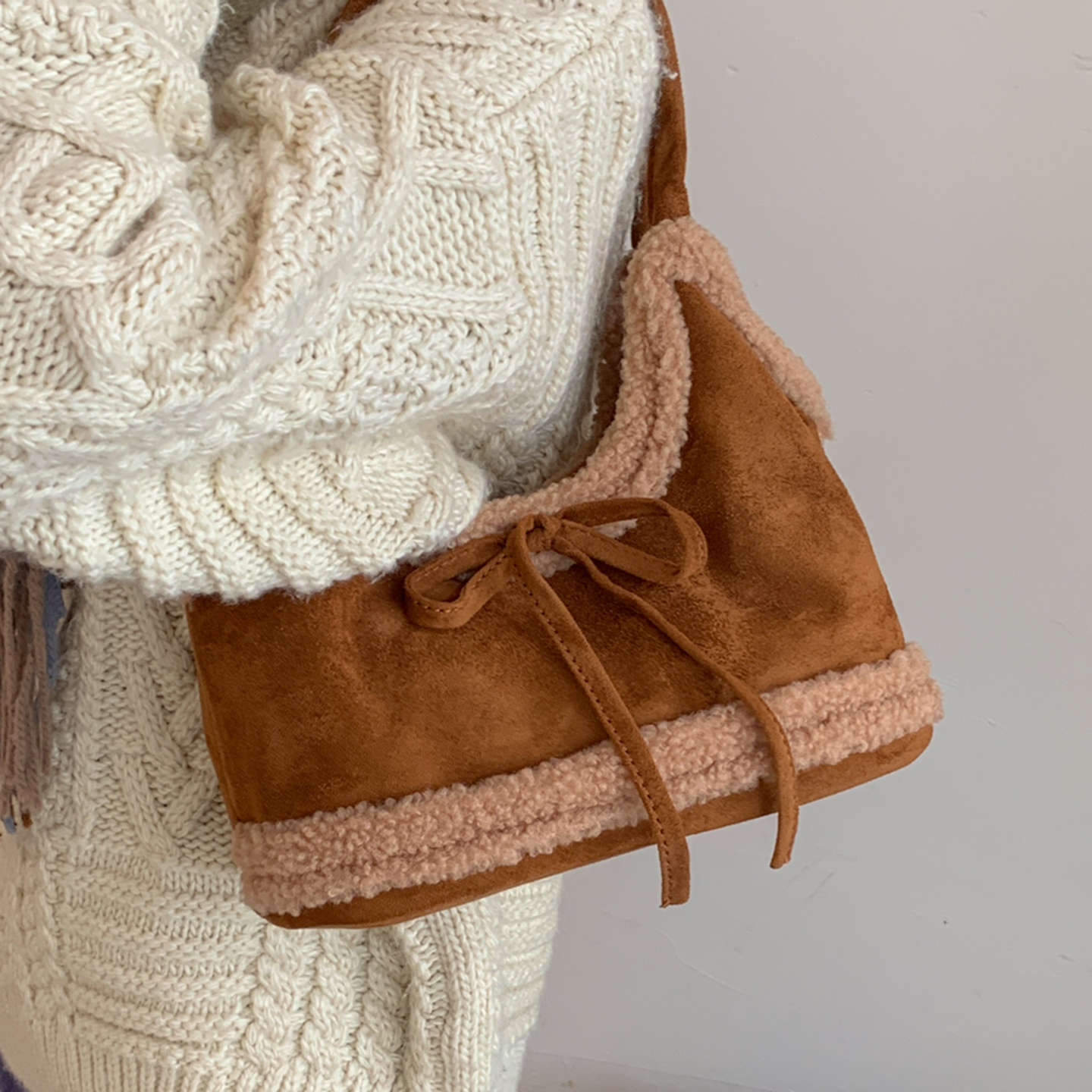 秋冬百搭羊羔毛手拎包女式2025新款时尚复古韩系芭蕾风单肩腋下包