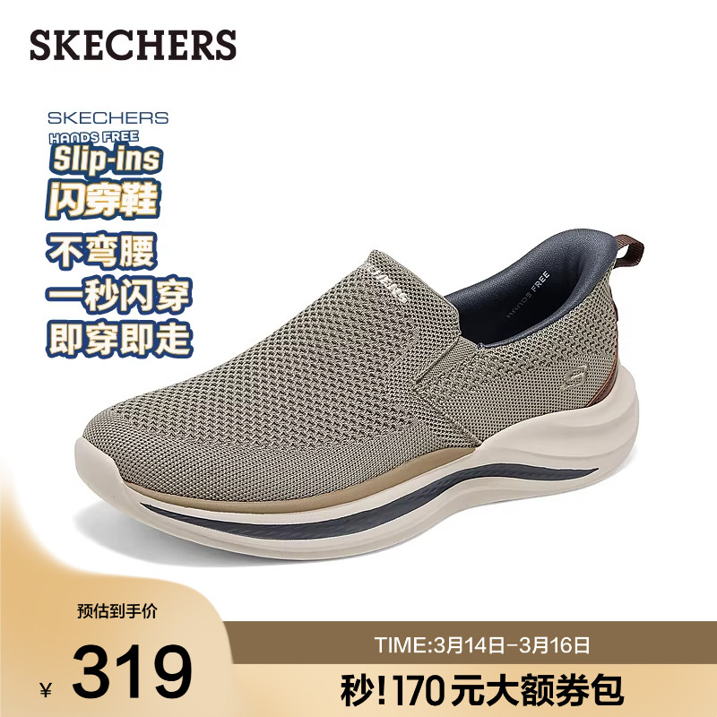 斯凯奇闪穿鞋春季新款男子一脚蹬健步鞋厚底舒适休闲运动鞋
