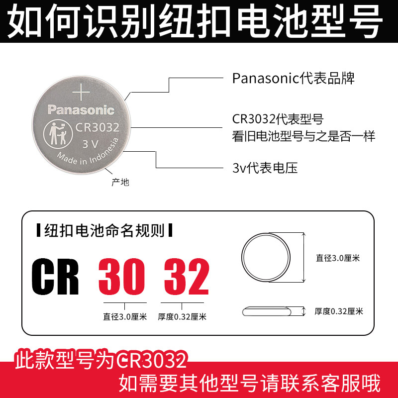 丰田花冠大众途锐汽车钥匙遥控器松下CR3032纽扣电池3V石英钟头灯盒子遥控主板人体重秤3D眼镜玩具血糖仪