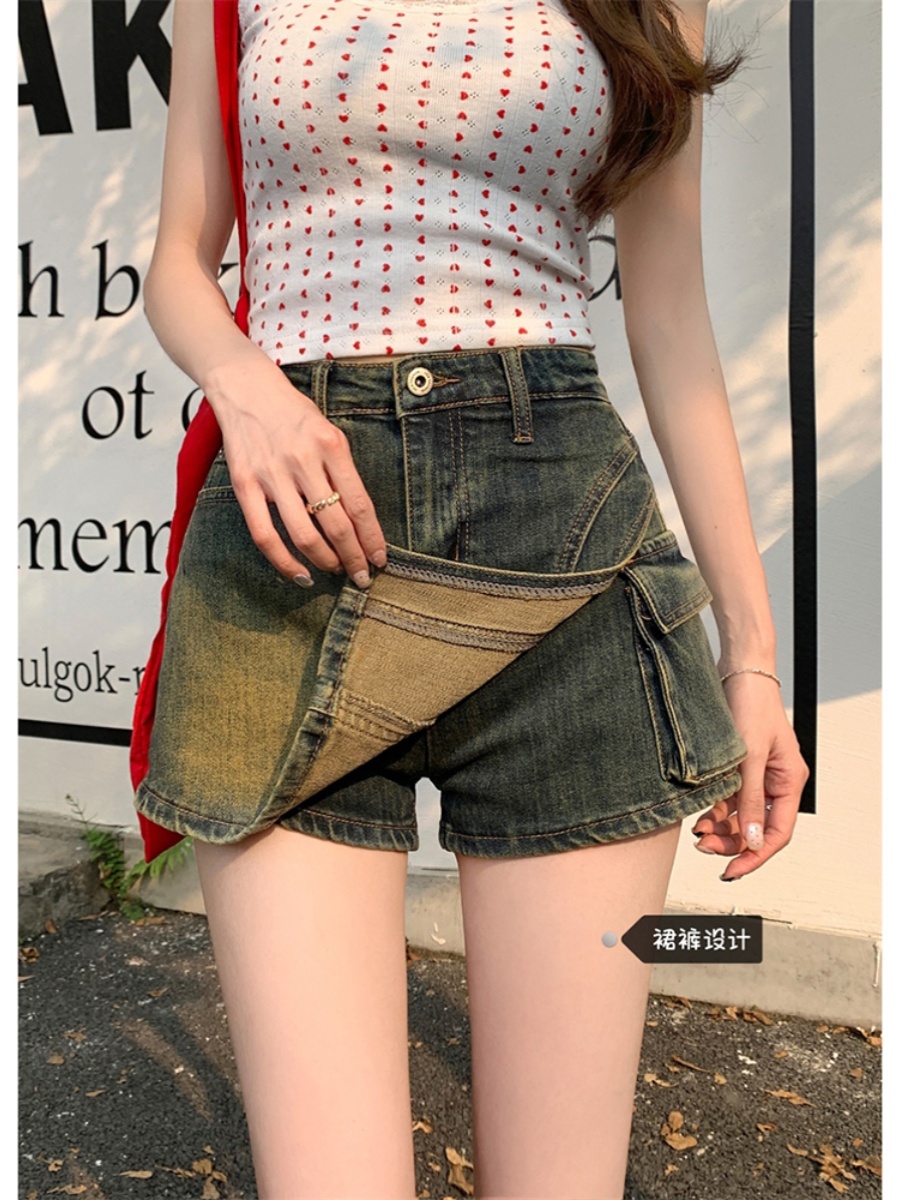 复古牛仔半身裙女夏2025新款大码包臀裙子高腰a字短裙防走光裙裤