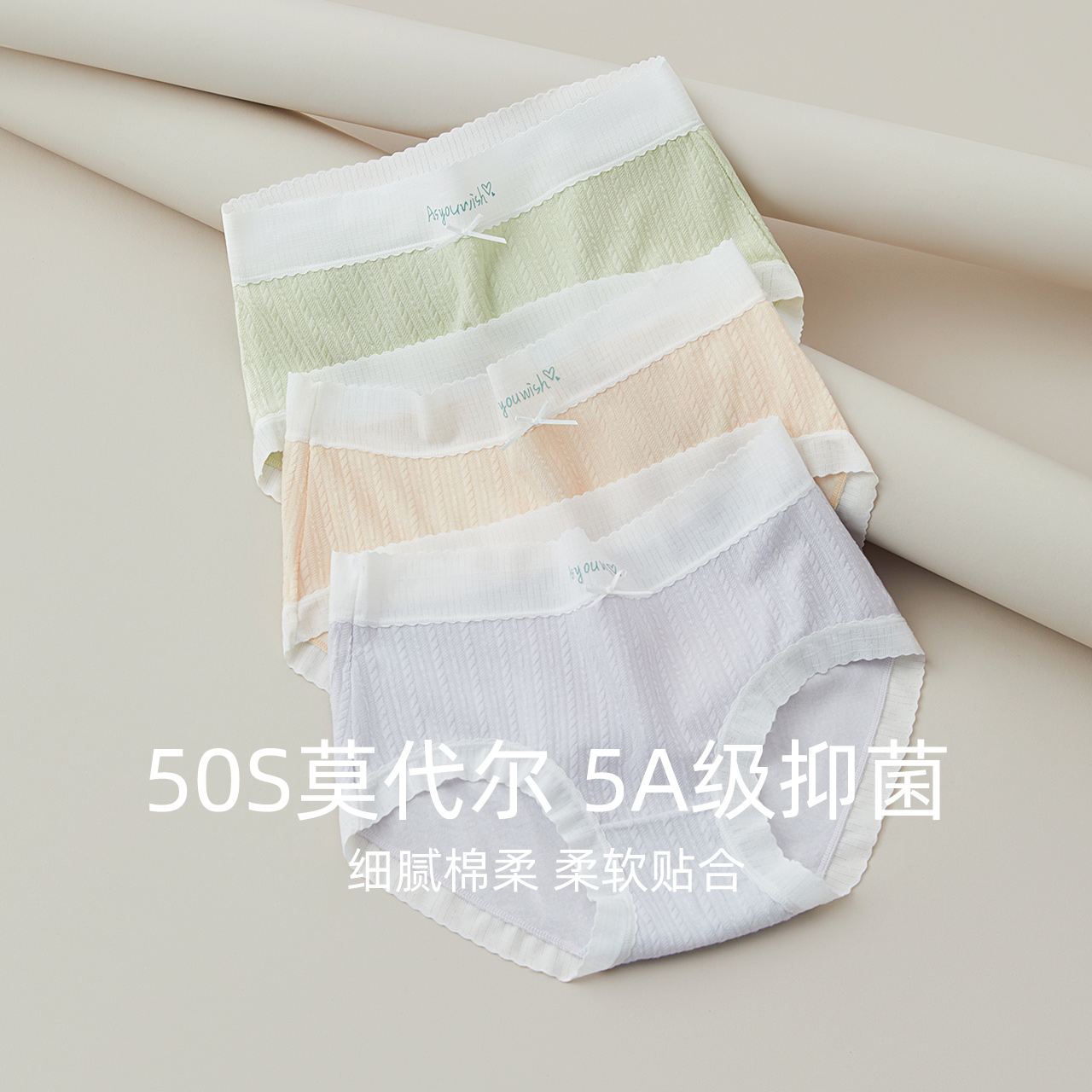 红豆莫代尔抑菌无痕内裤女