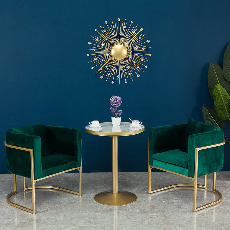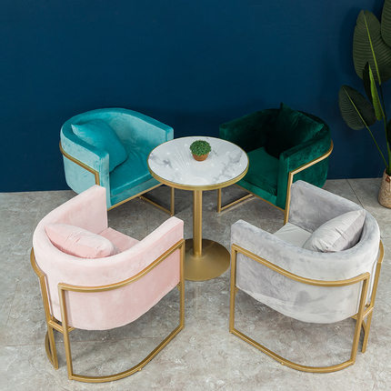 北欧轻奢布艺沙发酒店会客区铁艺沙发桌椅组合服装店接待单人椅