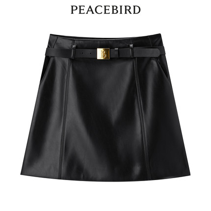 太平鸟女装春季肌理感PU短裙自带腰带潮酷半身裙A字裙