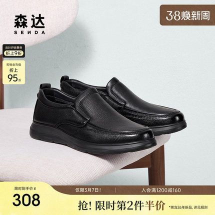 森达休闲皮鞋男春秋新款商场同款舒适一脚蹬休闲鞋1VE01AM5
