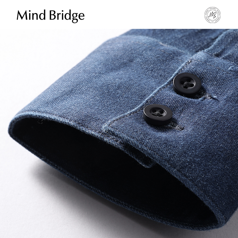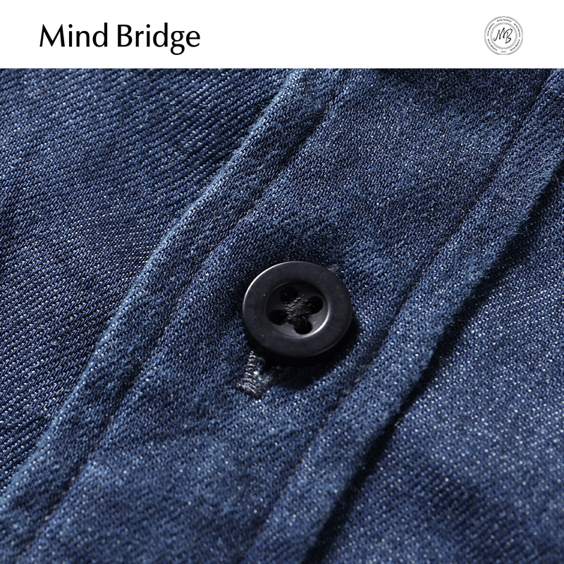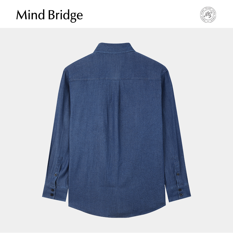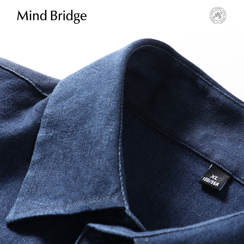 MindBridge2025年秋新款深蓝色长袖衬衫男士通勤休闲上衣牛仔衬衣