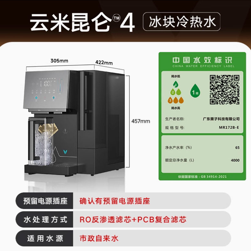 云米昆仑4矿泉制冰净水器制冷即热冰块一体直饮水家用台式净饮机