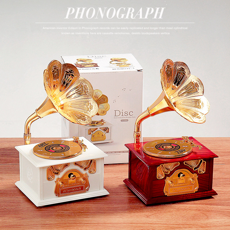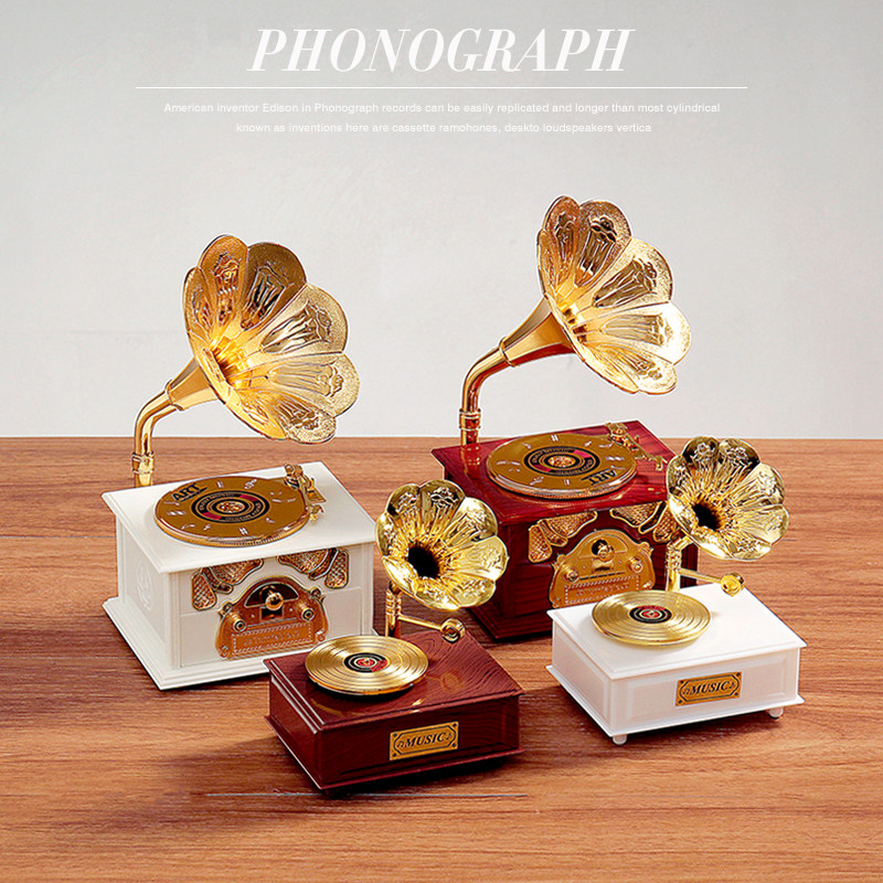 复古欧式唱片留声机音乐盒八音盒客厅玄关办公室装饰摆件生日礼品