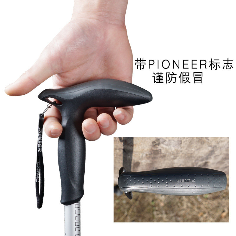 Pioneer/开拓者户外直柄登山杖3节铝合金内锁伸缩弯柄手杖狼牙5系