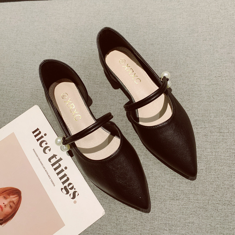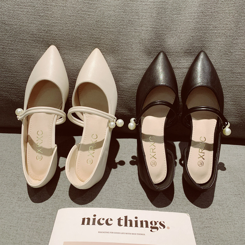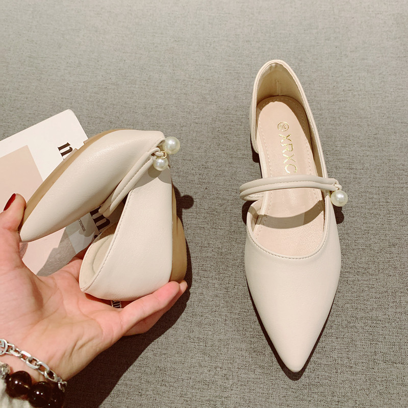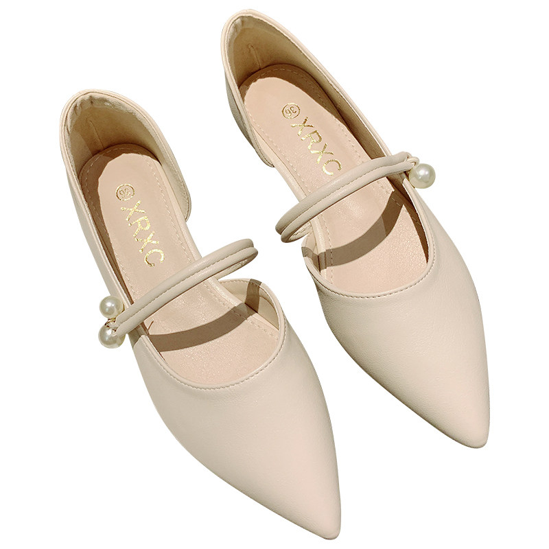 法式一字带浅口尖头侧空单鞋女2026年新款温柔风舒适软底大码瓢鞋