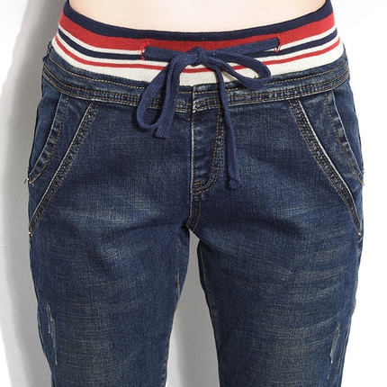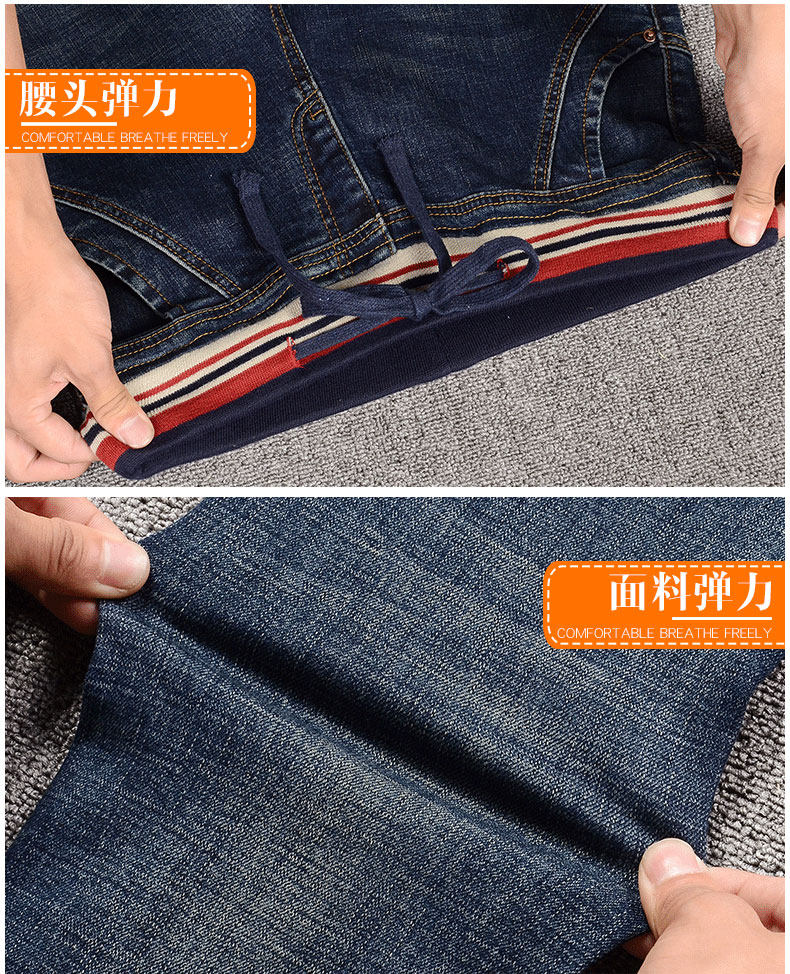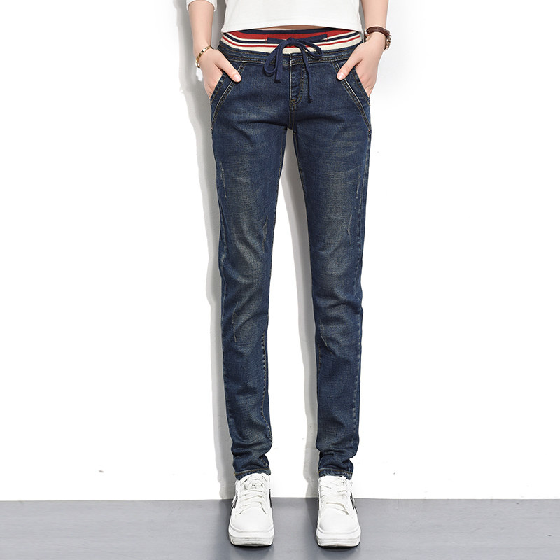 松紧腰春秋薄款保暖学生牛仔裤夏