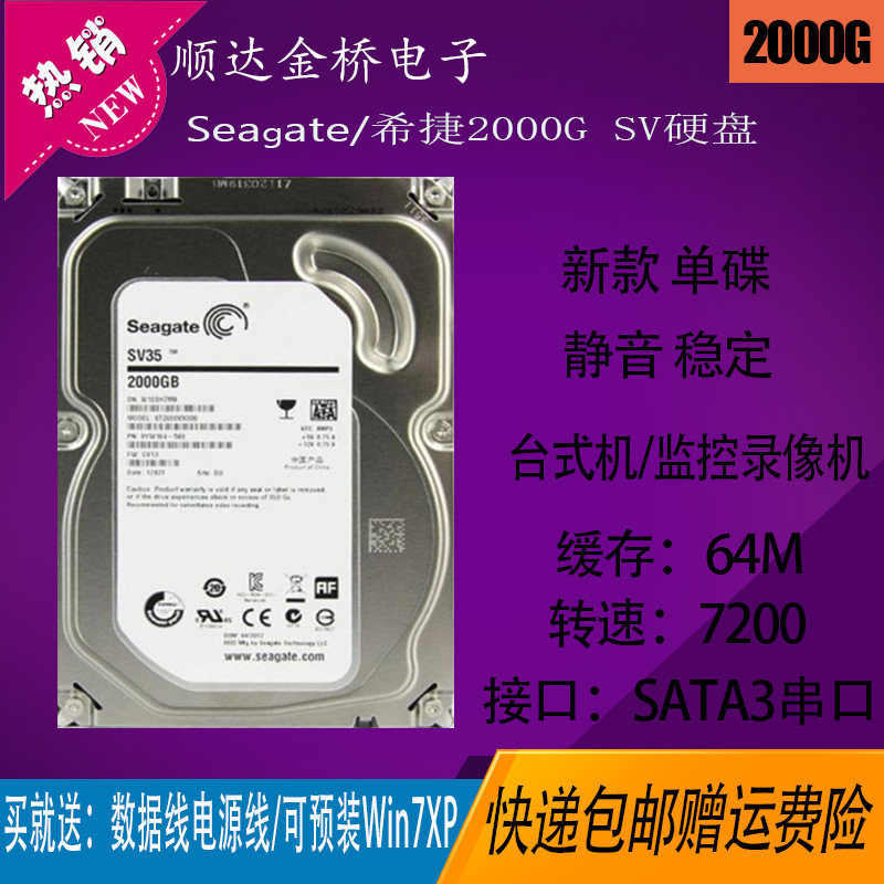 希捷ST2000VX000 2TB台式机硬盘SV35 监控专用2T硬盘7200转
