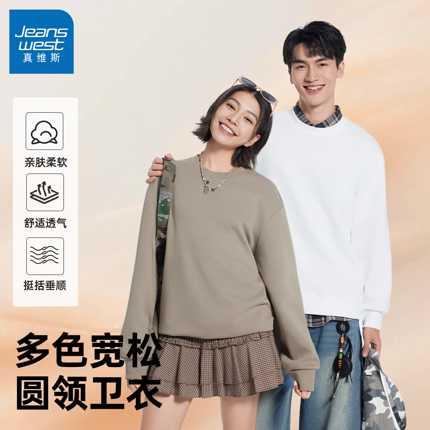 真维斯黑色重磅圆领卫衣男款春秋