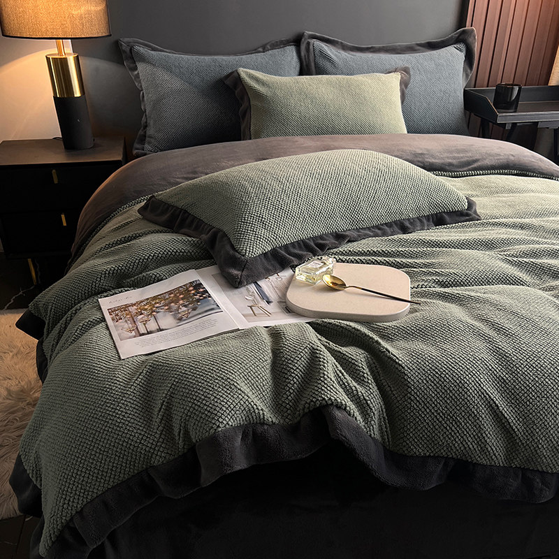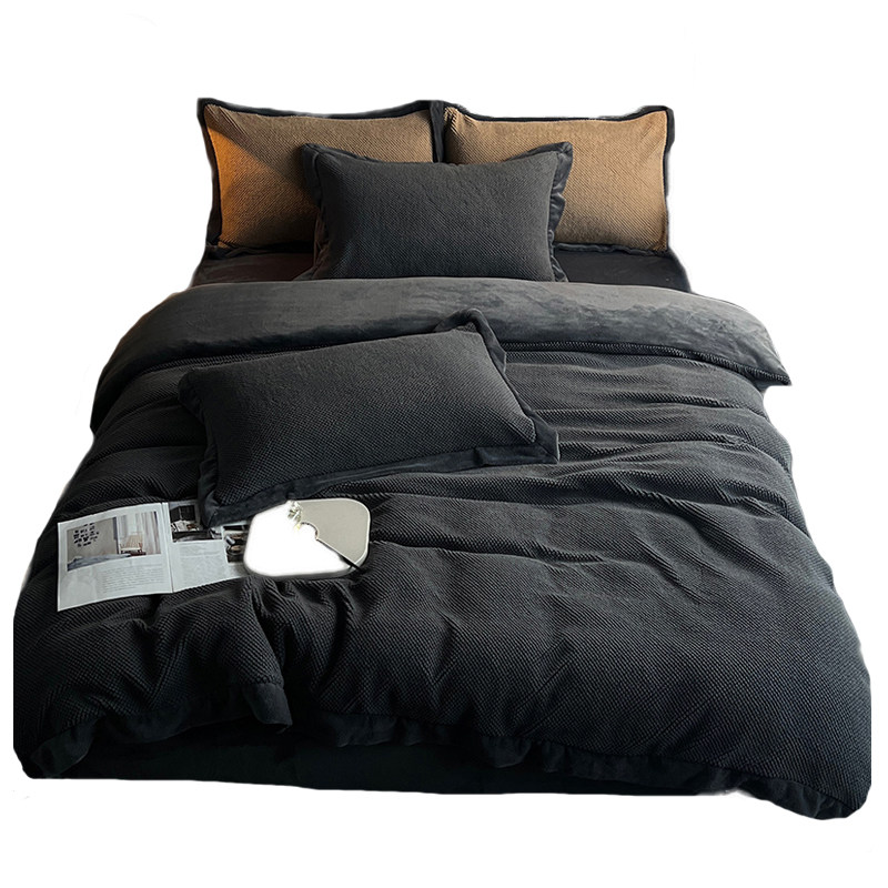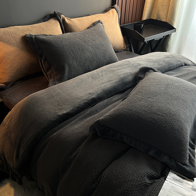 高端侘寂风冬季牛奶绒四件套加厚保暖双面珊瑚绒床单灰色床上用品