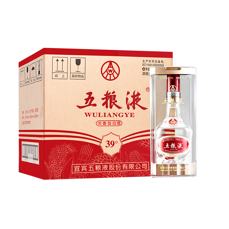 【双旦抢购中】五粮液39度500ml*6瓶整箱低度浓香白酒非原箱
