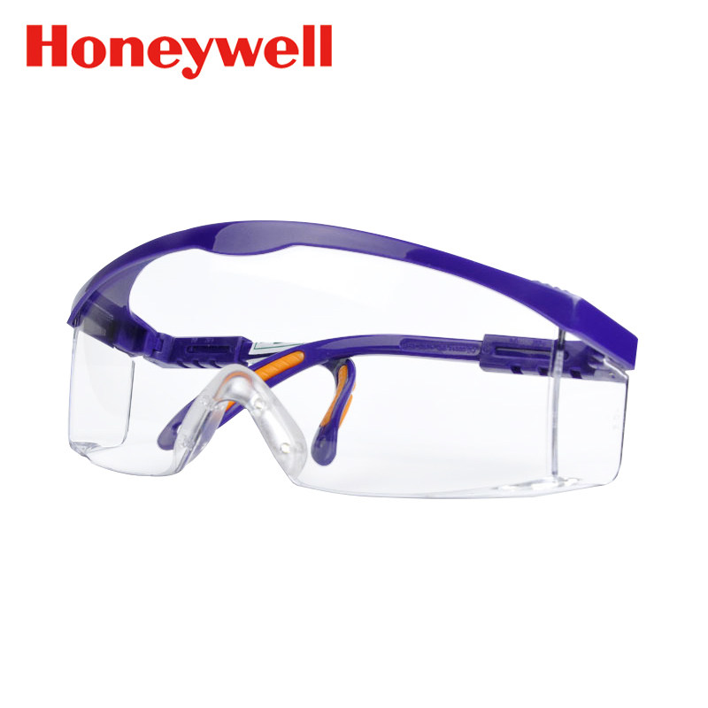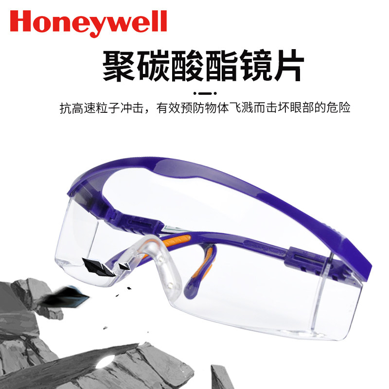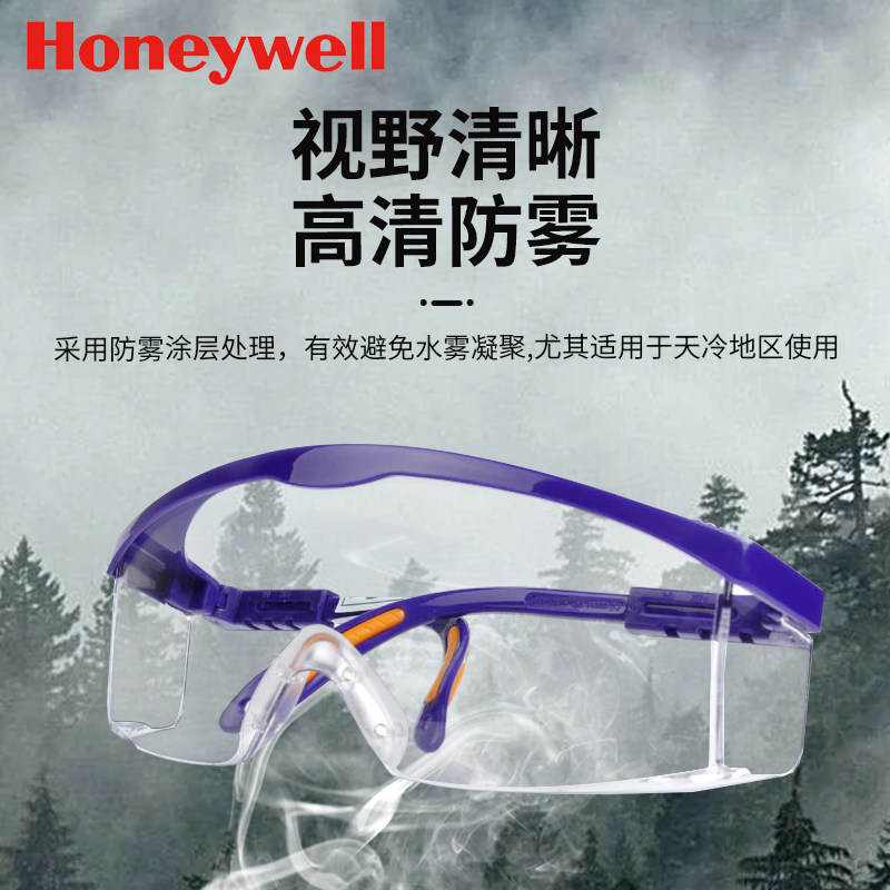 霍尼韦尔防护眼镜防雾防刮擦透明高清蓝色防冲击飞溅防风沙放灰尘