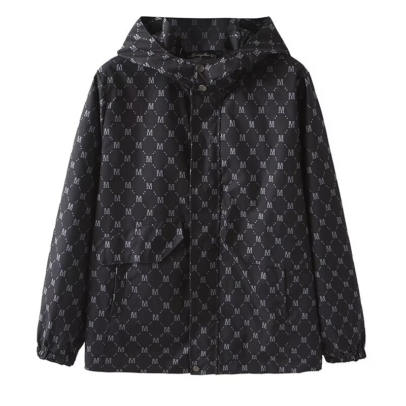 春秋时尚连帽夹克冲锋衣女大码胖mm宽松显瘦洋气百搭休闲上衣外套