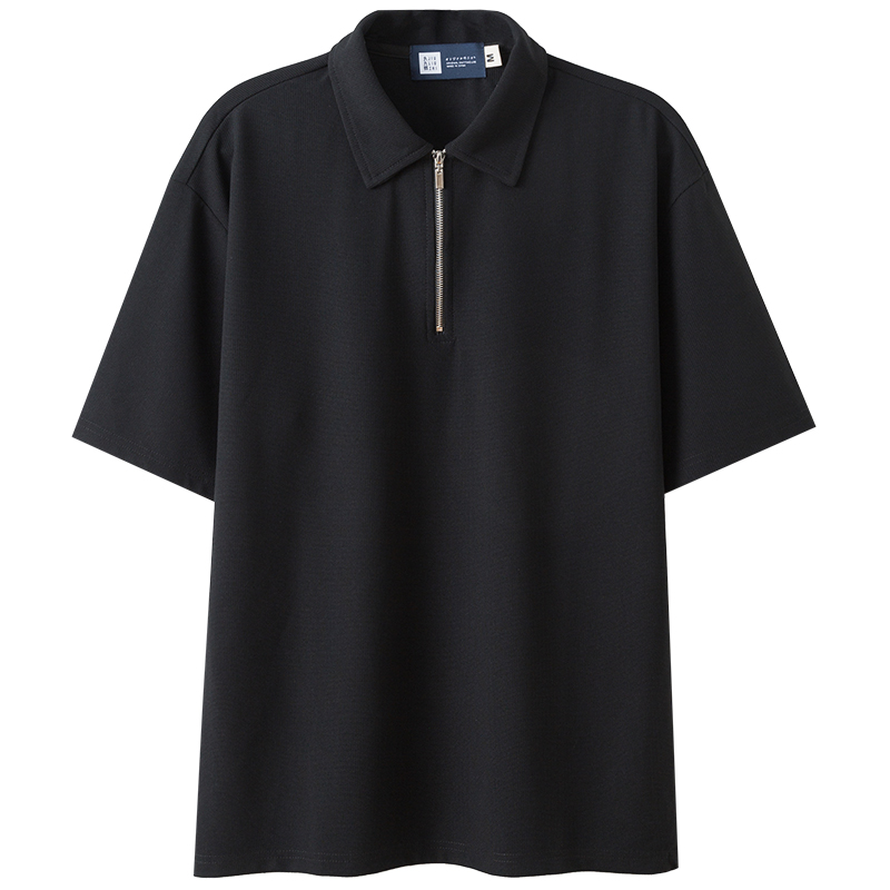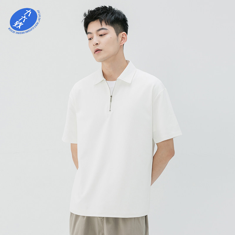 九六致原创夏日纯色宽松拉链短袖高级感polo衫男式翻领T恤轻熟风