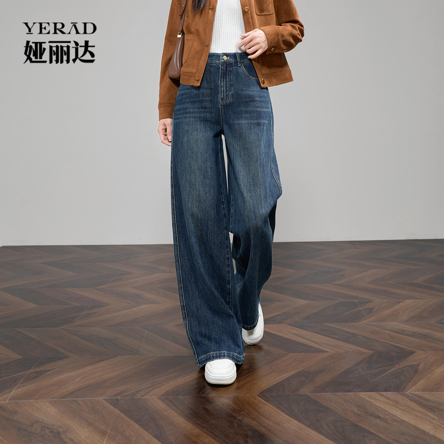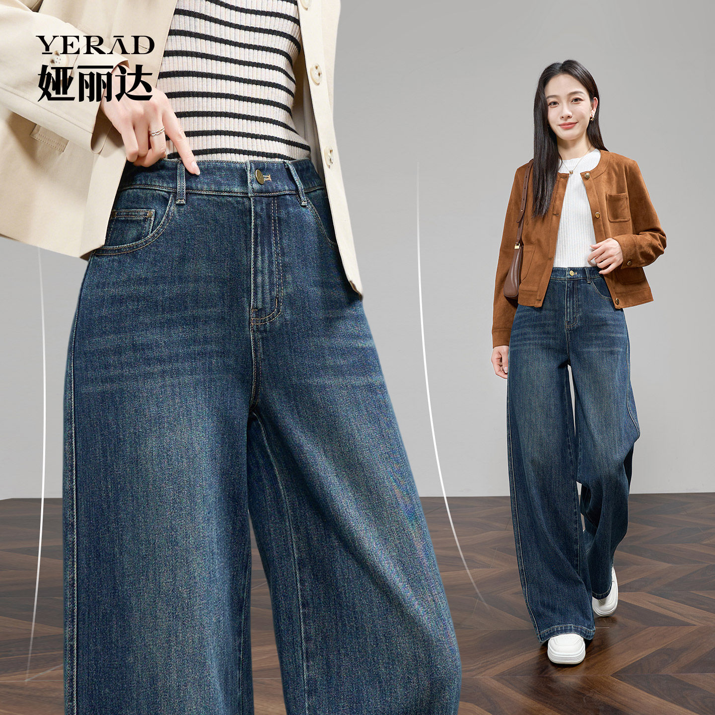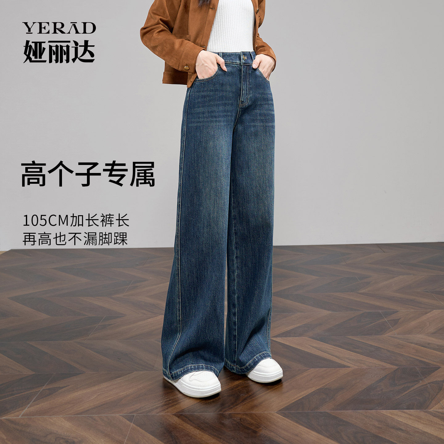 娅丽达加长阔腿牛仔裤秋新