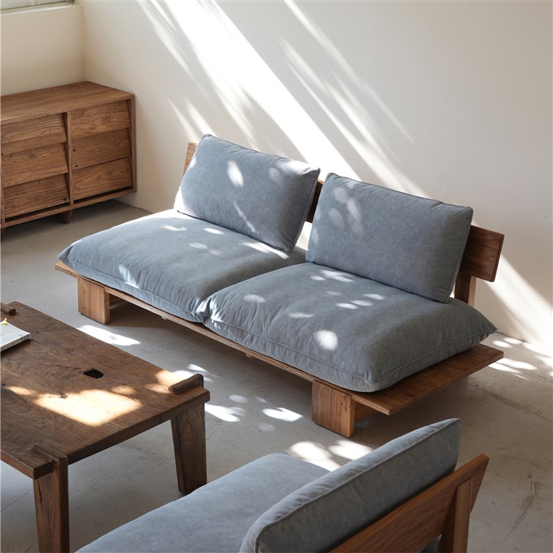 瑞泽日式侘寂e风原木沙发民宿别墅休闲实木简约小户型客厅布艺沙