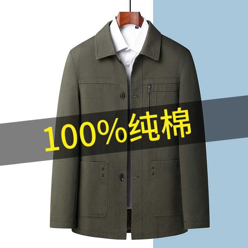 纯棉春秋季中老年夹克衫q男爸爸装中年男士加肥加大商务休闲外套