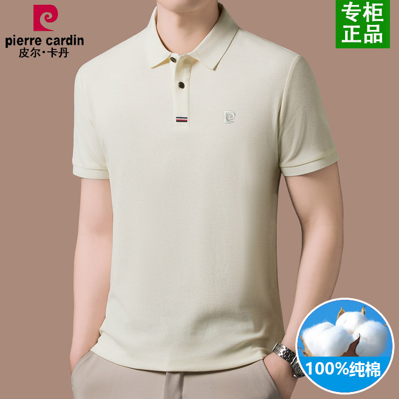 皮尔卡丹纯棉短袖t恤男薄款高端商务休闲翻领POLO衫男装半袖上衣