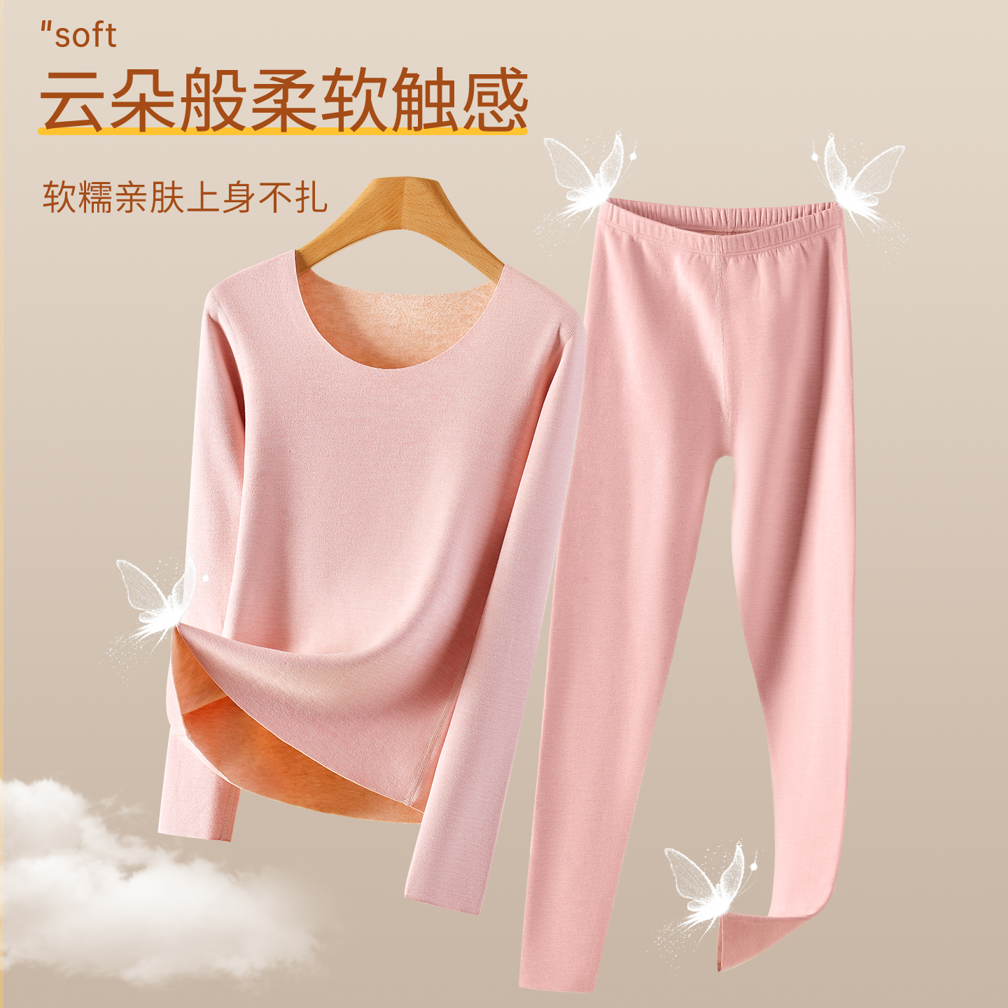 宜而爽德绒秋衣秋裤女套装冬季加绒加厚保暖内衣无痕打底线衣线裤