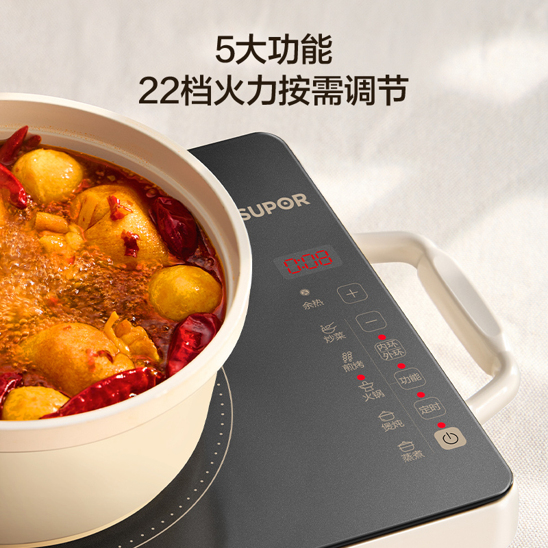 苏泊尔电陶炉家用多档火力调节大功率多功能低音智能定时电磁炉