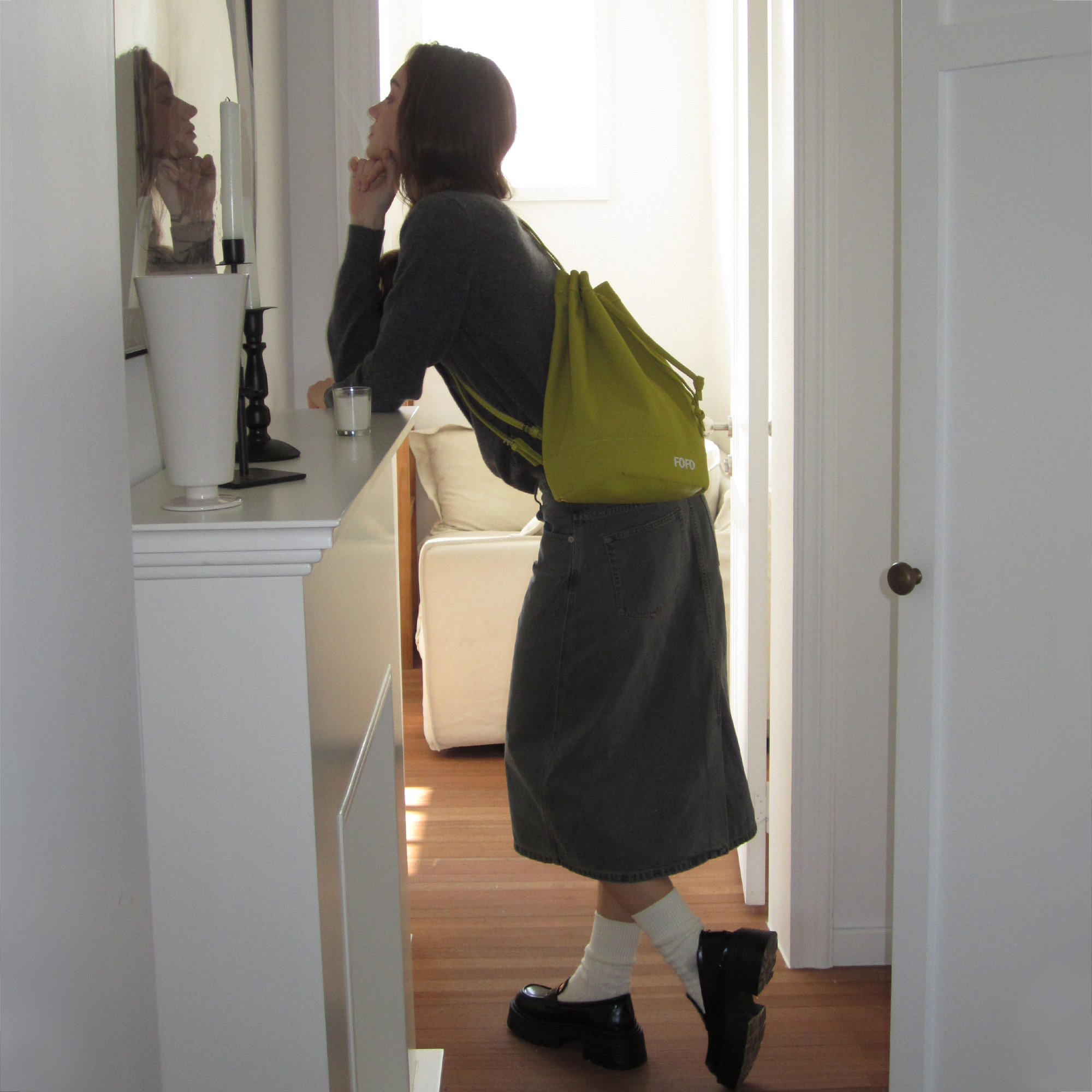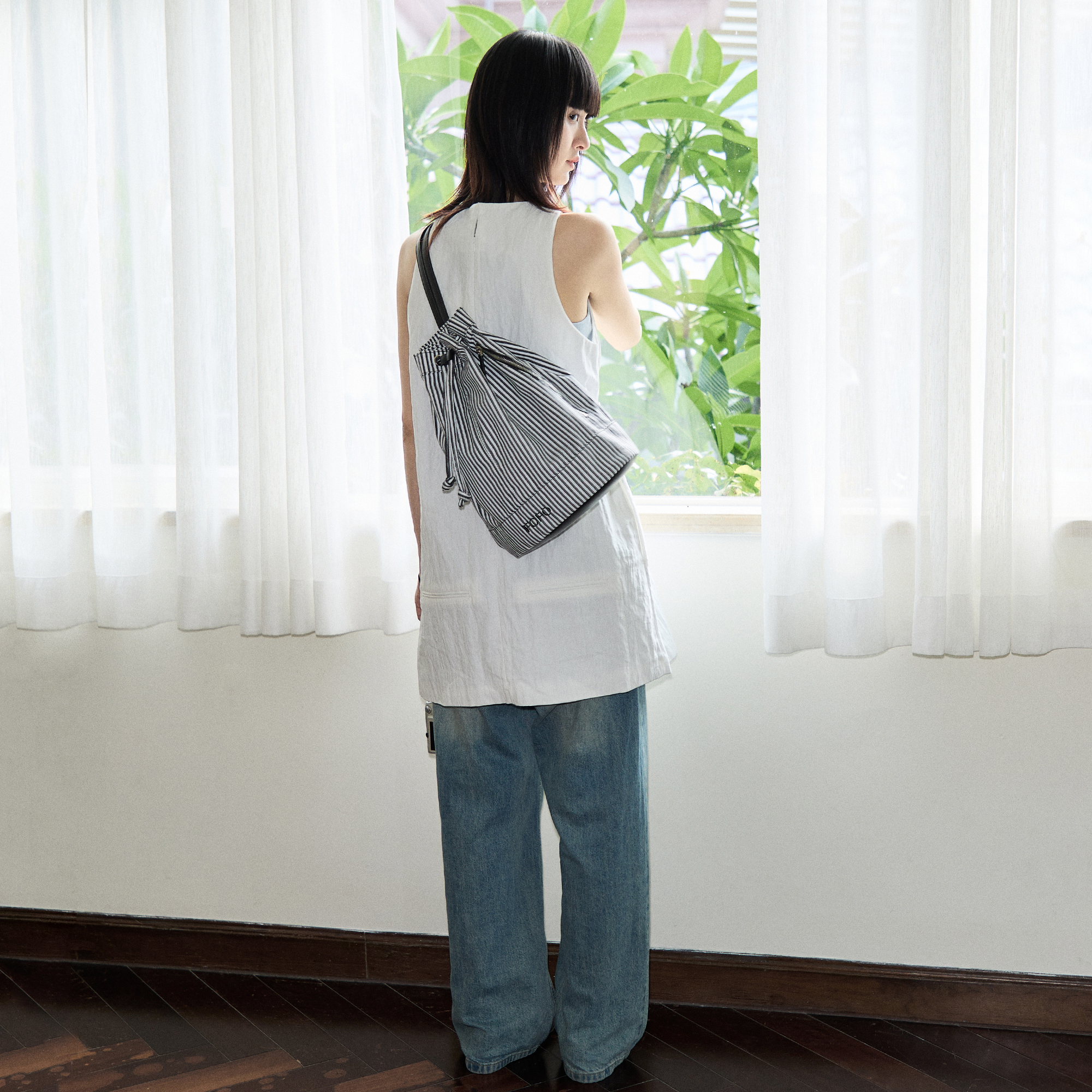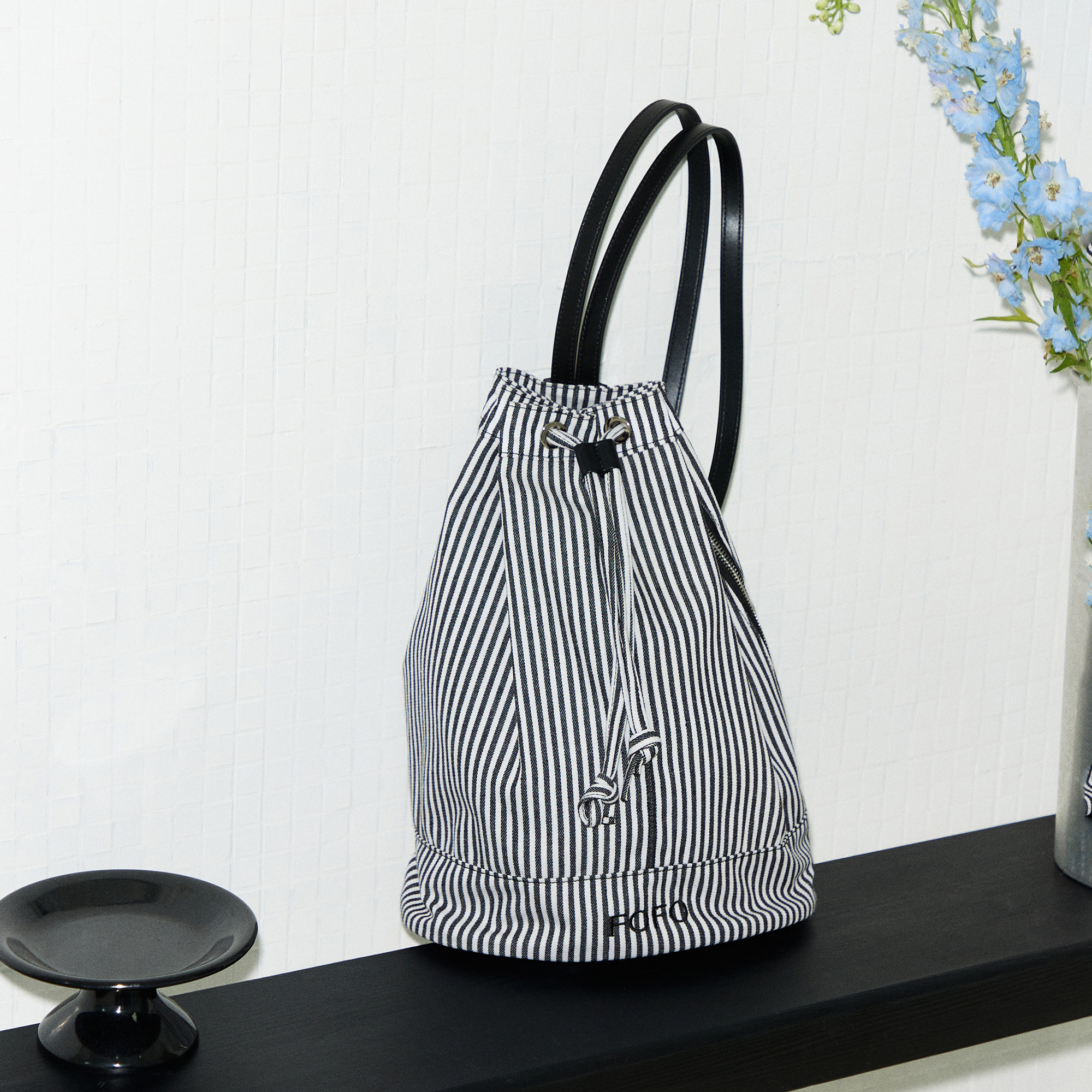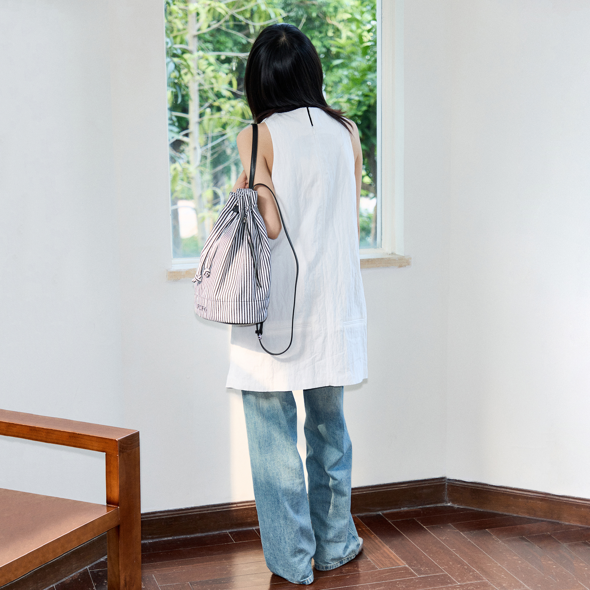 FOFO条纹水手包女韩系原创小众设计师双肩包包真皮抽绳斜挎水桶包