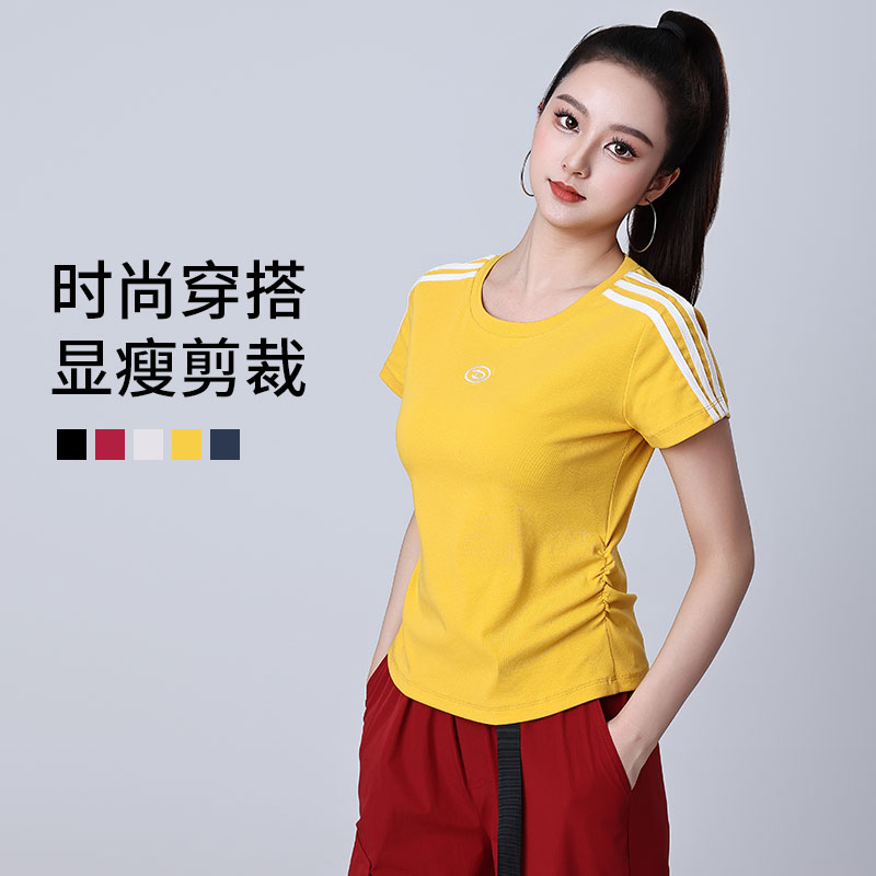 杨丽萍广场舞服装2025新款三条杠短袖运动上衣曳步舞跳舞衣演出服